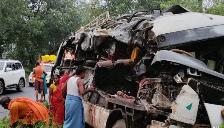 ଝାଡ଼ଖଣ୍ଡ : କାଉଡି ଯାତ୍ରାରୁ ଶେଷ ଯାତ୍ରା । ବସ୍‌କୁ ଧକ୍କା ଦେଲା ଟ୍ରକ୍ । ୧୮ କାଉଡ଼ିଆଙ୍କ ମୃତ୍ୟୁ । ଝାଡ଼ଖଣ୍ଡର ଦେଓଘରର ମୋହନପୁର ଥାନା ଅଞ୍ଚଳର ଜାମୁନିଆ ମୋଡ଼ ନିକଟରେ ଗୋଡ୍ଡା ଦେଓଘର ମୁଖ୍ୟ ରାସ୍ତାରେ ଘଟିଛି ଘଟଣା । ମଙ୍ଗଳବାର ସକାଳେ ଘଟିଛି ବଡ଼ ଦୁର୍ଘଟଣା ଘଟିଛି । ଯେଉଁଠାରେ ବସ୍ ସହିତ ଟ୍ରକ୍‌ର ଧକ୍କା ହୋଇଥିଲା ।