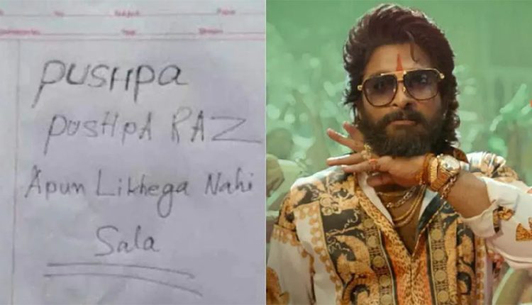 ନୂଆଦିଲ୍ଲୀ : ‘ପୁଷ୍ପା : ଦ ରାଇଜ’ ସିନେମାର କ୍ରେଜ ସାରା ଦେଶରେ ବଢ଼ିବାରେ ଲାଗିଛି । ଇନଷ୍ଟାଗ୍ରାମ ହେଉକି ସର୍ଟ ଭିଡ଼ିଓରେ ପୁଷ୍କାର ଡାଇଲଗ ଓ ଗୀତ ଭାଇରାଲ ହୋଇଛି । ଏମିତିକି କିଛି ଚୋରମାନେ ଏବେ ପୁଷ୍ପା ଷ୍ଟାଇଲରେ ଚୋର କାରବାର କରୁଥିବା ବି ଦେଖିବାକୁ ମିଳୁଛି । ଏସବୁ ଚର୍ଚ୍ଚା ଭିତରେ ଏବେ ଜଣେ ଦଶମ ଶ୍ରେଣୀ ଛାତ୍ରଙ୍କୁ ନେଇ ଚର୍ଚ୍ଚା ଜୋରଧରିଛି । ପରୀକ୍ଷା ଖାତାରେ ଦଶମ ଶ୍ରେଣୀ ଛାତ୍ରଜଣଙ୍କ ପୁଷ୍କା, ପୁଷ୍ପାରାଜ, ଆପୁନ ଲିଖେଗା ନାହିଁ । ଯେଉଁ ପରୀକ୍ଷା ଖାତାଟି ଏବେ ଭାଇରାଲ ହୋଇଛି ।ପଶ୍ଚିମବଙ୍ଗର ଜଣେ ଛାତ୍ର ଏଭଳି ଲେଖିଥିବା ଜାଣିବାକୁ ମିଳିଛି । ଛାତ୍ର ଜଣଙ୍କ ନାମ କିନ୍ତୁ ଏଯାବତ ଜଣାପଡ଼ିନାହିଁ । ତେବେ ତାହାର ଉତ୍ତର ଖାତା ଶିକ୍ଷକଙ୍କ ଜରିଆରେ ଭାଇରାଲ ହୋଇଥିବା କୁହାଯାଉଛି ।ସୂଚନାଯୋଗ୍ୟଯେ, ଆଲୁ ଅର୍ଜୁନଙ୍କ ଅଭିନୀତ ପୁଷ୍ପା : ଦ ରାଇଜ ସିନେମା ସାରା ଭାରତରେ ବେଶ ଚର୍ଚ୍ଚା ସୃଷ୍ଟିକରିଛି । ଏମିତିକି ବିଦେଶରେ ବି ଏହାକୁ ନେଇ ଚର୍ଚ୍ଚା ଚାଲିଛି । ବିଶେଷକରି ଆଲୁ ଅର୍ଜୁନଙ୍କ ଡ୍ୟାନ୍ସ ବେଶୀ ଭାଇରାଲ ହେବାରେ ଲାଗିଛି ।