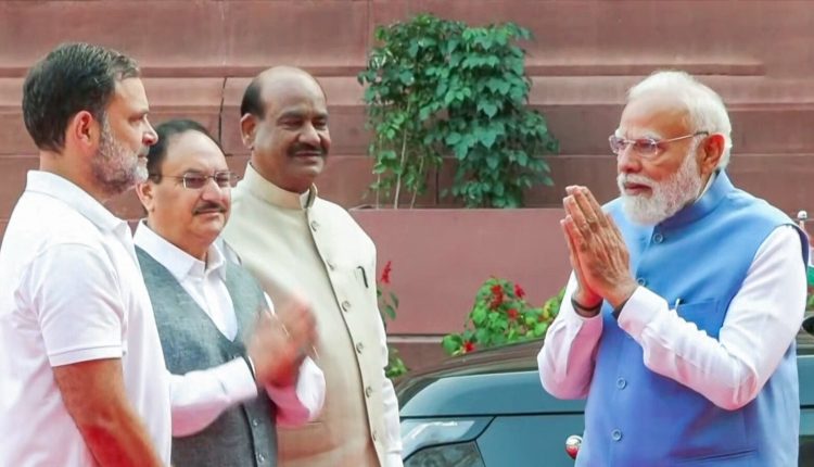ନୂଆଦିଲ୍ଲୀ; ଆଜି ଗଣତନ୍ତ୍ରର ମନ୍ଦିର ସଂସଦ ଭିତରର ଏକ ଭିଡିଓ ମୁଖ୍ୟ ଖବର ପାଲଟିଛି । ଏହି ଭିଡିଓରେ ପ୍ରଧାନମନ୍ତ୍ରୀ ନରେନ୍ଦ୍ର ମୋଦି ଏବଂ ସାଂସଦ ରାହୁଲ ଗାନ୍ଧୀଙ୍କ ମଧ୍ୟରେ ଏକ ସାକ୍ଷାତକୁ ଦର୍ଶାଯାଇଛି । ୧ ମିନିଟ୍ ୩୪ ସେକେଣ୍ଡର ଭିଡିଓରେ, ପ୍ରଧାନମନ୍ତ୍ରୀ ମୋଦି ଏବଂ ରାହୁଲ ଗାନ୍ଧୀଙ୍କ ମଧ୍ୟରେ ଏକ ଲମ୍ବା ଆଲୋଚନା ହୋଇଛି । ପ୍ରଥମେ, ପ୍ରଧାନମନ୍ତ୍ରୀ ଅନ୍ୟ ସାଂସଦମାନଙ୍କୁ ଅଭିବାଦନ କରିଥିଲେ, ତା’ପରେ ପଛକୁ ଫେରି ରାହୁଲ ଗାନ୍ଧୀଙ୍କ ପାଖକୁ ଯାଇଥିଲେ, ଯେଉଁଠାରେ ସେମାନଙ୍କୁ କଥାବାର୍ତ୍ତା କରୁଥିବାର ଦେଖିବାକୁ ମିଳିଛି । ରାହୁଲ ଗାନ୍ଧୀ ପ୍ରଧାନମନ୍ତ୍ରୀଙ୍କୁ ସମ୍ମାନ ଜଣାଇ ହାତ ଯୋଡି ସ୍ୱାଗତ କରିଥିଲେ ।