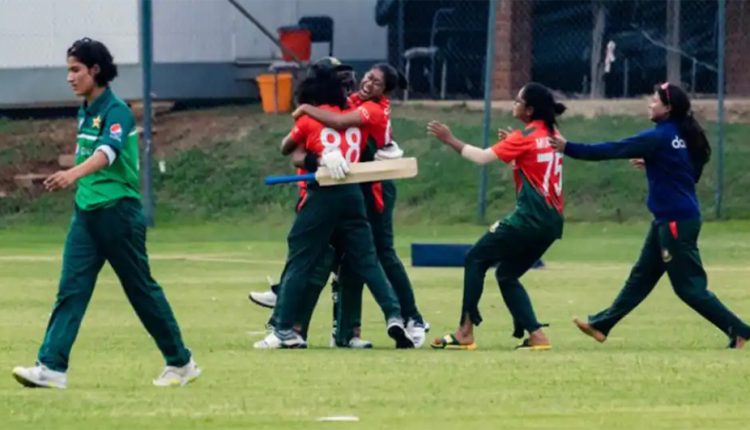 ନୂଆଦିଲ୍ଲୀ : ଆଇସିସି ମହିଳା କ୍ରିକେଟ୍ ବିଶ୍ୱକପ୍ ଯୋଗ୍ୟତା ପର୍ଯ୍ୟାୟରେ ବାଂଲାଦେଶ ରବିବାର ଏକ ରୋମାଞ୍ଚକର ମ୍ୟାଚରେ ପାକିସ୍ତାନକୁ ତିନି ୱିକେଟରେ ପରାସ୍ତ କରିଛି । ଯାହା ପରେ ସୋସିଆଲ ମିଡିଆରେ ଦଳର ଉତ୍ସବର ଭିଡିଓ ଭାଇରାଲ ହେବାରେ ଲାଗିଛି । ପ୍ରଥମେ ବ୍ୟାଟିଂ କରି ପାକିସ୍ତାନ ୫୦ ଓଭରରେ ୭ ଉଇକେଟ ହରାଇ ୨୦୧ ରନ କରିଥିଲା । ଏହାର ଜବାବରେ ବାଂଲାଦେଶ ରୋମାଞ୍ଚକର ଭାବେ ତିନି ୱିକେଟ୍ ବିଜୟ ହାସଲ କରିଥିଲା । ଏହା ପରେ ବାଂଲାଦେଶର ସମସ୍ତ ଖେଳାଳି ଆନନ୍ଦିତ ହୋଇଥିଲେ । ଫାତିମା ସାନା ବିଜୟ ରନ ଅର୍ଜନ କରିବା ପରେ ସମଗ୍ର ବାଂଲାଦେଶୀ ଖେଳାଳି ପଡିଆ ଭିତରକୁ ପ୍ରବେଶ କରିଥିଲେ ଓ ଉତ୍ସବ ମନାଇଥିଲେ ।