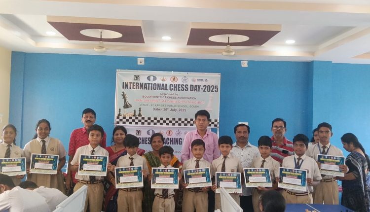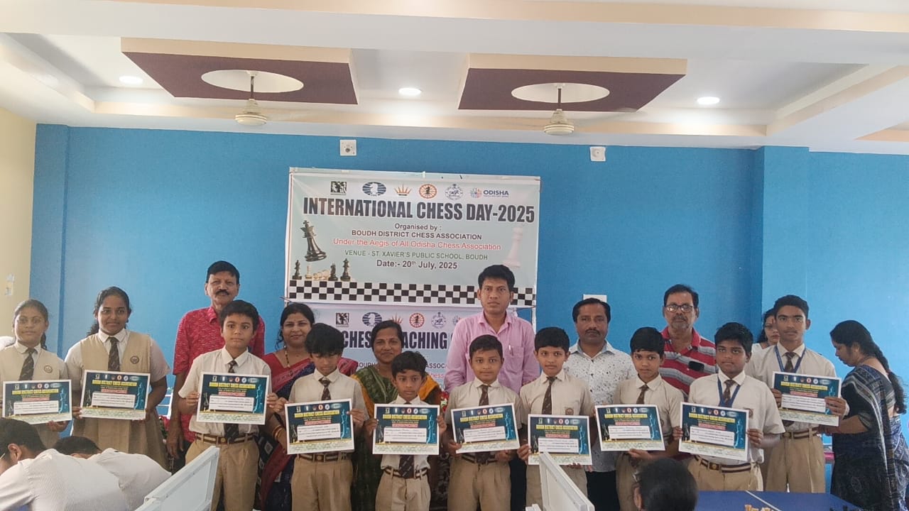 ଅନ୍ତର୍ଜାତୀୟ ଚେସ ଦିବସ ତଥା କୋଚିଂ କ୍ୟାମ୍ପ ସମାପନ ଉତ୍ସବରେ ମୁଖ୍ୟ ଅତିଥି ଭାବେ ଜିଲ୍ଲା ସୂଚନା ଓ ଲୋକସମ୍ପର୍କ ଅଧିକାରୀ ରିତାକାନ୍ତି ବାଳିଆରସିଂ, ସମ୍ମାନିତ ଅତିଥି ଭାବେ ଦୈନିକ ହୀରାଞ୍ଚଳ ସମ୍ପାଦକ ଯୁଗଳ କିଶୋର ସାମଲ, ଜିଲ୍ଲା ସଂସ୍କୃତି ଅଧିକାରୀ ଅକ୍ରୁର ଜାନୀ, ସେଣ୍ଟ୍ ଜାଭିୟର୍ସ ପବ୍ଲିକ ସ୍କୁଲ ଅଧ୍ୟକ୍ଷା ସସ୍ମିତା ସେନାପତି, ବୌଦ୍ଧ ଜିଲ୍ଲା ଚେସ ଆସୋସିଏସନ ସଭାପତି ରଜନୀକାନ୍ତ ଦାଶ, ବୌଦ୍ଧ ଜିଲ୍ଲା ଚେସ ଆସୋସିଏସନ କୋଷାଧ୍ୟକ୍ଷ ନିରୋଜ କୁମାର ମେହେର ଯୋଗ ଦେଇଥିଲେ। ସେଣ୍ଟ୍ ଜାଭିୟର୍ସ ପବ୍ଲିକ ସ୍କୁଲ ଶିକ୍ଷୟିତ୍ରୀ ଅନିଶା ମାଝୀ ସ୍ୱାଗତ ଭାଷଣ ପ୍ରଦାନ କରିଥିବା ବେଳେ ନିରୋଜ କୁମାର ମେହେର ଧନ୍ୟବାଦ ଅର୍ପଣ କରିଥିଲେ। ଉକ୍ତ କାର୍ଯ୍ୟକ୍ରମରେ ଆୟୁଷ ଅଙ୍କିତ ଦାନୀ ସହଯୋଗ କରିଥିଲେ।