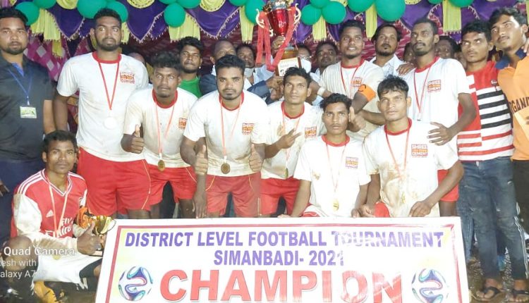 ଦାରିଙ୍ଗବାଡ଼ି : ଦାରିଙ୍ଗବାଡି ବ୍ଲକ ସିମନବାଡି ଗୋଷ୍ଠୀ ଖେଳ ପଡ଼ିଆଠାରେ ଗତ ୧୯ତାରିଖରୁ ଚାଲିଥିବା ଜିଲ୍ଲାସ୍ତରୀୟ ଫୁଟବଲ ଟୁର୍ଣ୍ଣାମେଣ୍ଟ୍ ସିମନବାଡ଼ି-୨୦୨୧ଉଦଯାପିତ ହୋଇଯାଇଛି । ଏହି ଟୁର୍ଣ୍ଣାମେଣ୍ଟ ଗତ ୧୯ ତାରିଖଠାରୁ ଆରମ୍ଭ ହୋଇଥିଲା । ଉଦଯାପନୀ ଦିବସରେ ଫାଇନାଲ ମ୍ୟାଚ ବାଲିଗୁଡା ବ୍ଳକ ଅନ୍ତର୍ଗତ ସିନ୍ଦ୍ରିଗାଁ ଦଳ ସହିତ ଫିରିଙ୍ଗିଆ ବ୍ଳକ ରତଙ୍ଗ ଗ୍ରାମ ପଞ୍ଚାୟତ ଅନ୍ତର୍ଗତ ଡଙ୍ଗରପଡ଼ା ଦଳ ମଧ୍ୟରେ ଖେଳ ହୋଇଥିଲା । ଏହି ଖେଳରେ ୩-୦ ଗୋଲରେ ଡଙ୍ଗରପଡ଼ା ଦଳ ବିଜୟୀ ହୋଇଥିଲା ବେଳେ ସିନ୍ଦ୍ରିଗାଁ ଦଳ ରନର୍ସଅପ ହୋଇଥିଲା । ଏହି ଟୁର୍ଣ୍ଣାମେଣ୍ଟରେ ୧୬ ଗୋଟି ଫୁଟବଲ ଦଳକୁ ନେଇ ଖେଳ ଆୟୋଜନ ହୋଇଥିଲା । ଫାଇନାଲ ମ୍ୟାଚରେ ମୁଖ୍ୟ ଅତିଥି ଭାବେ ବିଡିଓ କଳାକୃଷ୍ଣ ପ୍ରଧାନ, ସମ୍ମାନୀୟ ଅତିଥି ଭାବେ ସୁଶାନ୍ତ କୁମାର ପ୍ରଧାନ, ବିଧାୟକ ପ୍ରତିନିଧି ଦୀପକ କୁମାର ସାହୁ, ବ୍ଳକ ବିଜେଡି ସଭାପତି ଜ୍ୟୋତିରାଜ ପ୍ରଧାନ, ଶିକ୍ଷକ ବିଦେଶୀ ନାୟକ, ସିମନବାଡି ସରପଞ୍ଚ ପ୍ରତିନିଧି ପରମେ ପ୍ରଧାନ, ଦାରିଙ୍ଗବାଡି ପ୍ରେସ କ୍ଲବ ସଭାପତି ପ୍ରେମଚାନ୍ଦ ସିଂ ଉପସଭାପତି ପ୍ରିୟବ୍ରତ ସାହୁ ,ସମ୍ପାଦକ ଅଶ୍ୱିନ ମନ୍ତ୍ରୀ କୋଷାଧ୍ୟକ୍ଷ ତରଣୀ ସାହୁ ପ୍ରମୁଖ ଯୋଗ ଦେଇଥିଲେ । ଖେଳ ସମାପ୍ତି ପରେ ବିଜୟୀ ଦଳକୁ ମୁଖ୍ୟ ଅତିଥି ବିଡିଓ ଶ୍ରୀ ପ୍ରଧାନ ନଗଦ୧୫ହଜାର ଟଙ୍କା ସହିତ ଟ୍ରଫି ପ୍ରଦାନ କରିଥିବା ବେଳେ ରନର୍ସ ଦଳକୁ ୧୦ହଜାର ଟଙ୍କା ସହିତ ରନର୍ସ ଟ୍ରଫି ପ୍ରଦାନ କରିଥିଲେ । ପ୍ରତିଯୋଗିତାରେ ଷ୍ଟାଇଲିସ ଖେଳାଳୀ ଓ ଶ୍ରେଷ୍ଠ ସ୍କୋରର ଭାବେ ଡଙ୍ଗରପଡ଼ା ଦଳର ବିଜୟ କୁମାରଙ୍କୁ ପୁରସ୍କୃତ କରାଯାଇଥିବା ବେଳେ ଶୃଙ୍ଖଳିତ ଦଳ ଭାବେ ଦାରିଙ୍ଗବାଡ଼ି ଦଳକୁ ପୁରସ୍କୃତ କରାଯାଇଥିଲା । ଏହି ଟୁର୍ଣ୍ଣାମେଣ୍ଟକ କୁ ଆୟୋଜନ କରିଥିବା କମିଟିର କର୍ମକର୍ତ୍ତା ଜଗନ୍ନାଥ ନାୟକ,ପ୍ରଭାସ ସାହୁ,ଅମର ନାୟକ(ତୋଫାନ), ମାଥ୍ୟାସ ପ୍ରଧାନ,ହୃଷୀକେଶ ବେହେରା,ଜହନ ନାୟକ,ସିଦ୍ଧାନ୍ତ ପ୍ରଧାନ,ପିନସ ପ୍ରଧାନ,ପିଇଟି ଶିକ୍ଷକ ସାମନ୍ତ ପ୍ରଧାନ ପ୍ରମୁଖଙ୍କ ନେତୃତ୍ୱରେ ଏହି ଟୁର୍ଣ୍ଣାମେଣ୍ଟ ୧୦ ଦିନ ଧରି ଶାନ୍ତି ଶୃଙ୍ଖଳା ଭାବେ ପରିଚାଳିତ ହୋଇଥିବା ବେଳେ ସମସ୍ତ ମ୍ୟାଚରେ ରେଫରି ଭାବେ ସୁନୀଲ କୁମାର ବେହେରା,ସୁଜିତ ରାଜହନ୍ସ,ଉଦୟ ଶଙ୍କର କହଁର,ଶମ୍ଭୁ ପ୍ରସାଦ ମଲ୍ଲିକ, ଅରୁଣ ମଲ୍ଲିକ ପ୍ରମୁଖ ମ୍ୟାଚ ପରିଚାଳନା ରେ ସହାୟତା କରିଥିଲେ ।