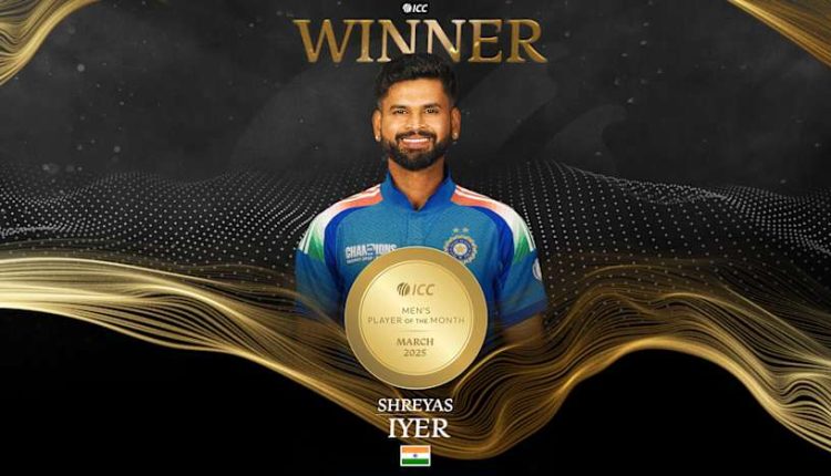 ନୂଆଦିଲ୍ଲୀ-ଆଇପିଏଲ ମଝିରେ ଭାରତର ମିଡିଲ ଅର୍ଡର ବ୍ୟାଟର ଶ୍ରେୟସ ଆୟରଙ୍କୁ ମିଳିଛି ବଡ ପୁରସ୍କାର । ତାଙ୍କୁ ମାର୍ଚ୍ଚ ମାସ ପାଇଁ ଆଇସିସିର ପ୍ଲେୟାର ଅଫ୍ ଦ ମନ୍ଥ ଆୱାର୍ଡ ମିଳିଛି । ମଙ୍ଗଳବାର ଏହି ଘୋଷଣା କରିଛି ଆଇସିସି । ଆୟରଙ୍କୁ ଏହି ପୁରସ୍କାର ଜିତିବା ପାଇଁ ନ୍ୟୁଜିଲାଣ୍ଡର ଜୈକବ ଓ ରଚିନ ରବିନ୍ଦ୍ରଙ୍କୁ କଡା ଟକ୍କର ଦେବାକୁ ପଡିଥିଲା । ଆୟର ଚାମ୍ପିଆନ୍ସ ଟ୍ରଫିରେ ଭାରତ ପାଇଁ ସର୍ବାଧିକ ରନ କରିଥିଲେ । ସେ ଏହି ଟୁର୍ଣ୍ଣାମେଣ୍ଟରେ ୨୪୩ରନ କରିଥିଲେ । ଏଥିରେ ଦୁଇଟି ଅର୍ଦ୍ଧଶତକ ଥିଲା । ଏହି ପୁରସ୍କାର ଜିତିବା ପରେ ଶ୍ରେୟସ କହିଛନ୍ତି ଯେ, ଏହି ଆୱର୍ଡ ମୋ ପାଇଁ ଗର୍ବର ବିଷୟ । ଚାମ୍ପିଆନ୍ସ ଟ୍ରଫି ଉଠାଇବା ସମୟ ମୋ ପାଇଁ ସବୁଦିନ ପାଇଁ ଚିରୋସ୍ମରଣୀୟ ହୋଇ ରହିବ ।ଶ୍ରେୟସ ଆୟରଙ୍କ ପୂର୍ବରୁ ଭାରତୀୟ ଓପନର ଶୁବମାନ ଗିଲ ମଧ୍ୟ ଫେବୃଆରୀ ମାସ ଏହି ପୁରସ୍କାର ଜିତିଥିଲେ । ଲଗାତାର ଭାବେ ଭାରତୀୟ ଖେଳାଳି ଏହି ପୁରସ୍କାର ଜିତିବାର ରେକର୍ଡ କରିଛନ୍ତି ।