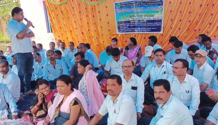 ନୂଆଗାଁ : ନୟାଗଡ଼ ଜିଲ୍ଲା ନୂଆଗାଁ ବ୍ଲକ ଶିକ୍ଷା କାର୍ଯ୍ୟାଳୟ ସମ୍ମୁଖରେ ଆଜି ନିଖିଳ ଉତ୍କଳ ପ୍ରାଥମିକ ଶିକ୍ଷକ ସଂଘ ନେତୃତ୍ୱରେ ଚାଲିଥିବା ଆନ୍ଦୋଳନରେ ଆଜି ନୂଆଗାଁ ବ୍ଳକ୍ର ୩୮୨ଜଣ ଶିକ୍ଷକ ଶିକ୍ଷୟିତ୍ରୀ ଯୋଗ ଦେଇଥିଲେ । ପ୍ରାଥମିକ ଶିକ୍ଷକ ସଂଘ, କନିଷ୍ଠ ଶିକ୍ଷକ ସଂଘ, କଳା ଓ କ୍ରୀଡ଼ା ଶିକ୍ଷକ ଆଦି ସମସ୍ତ ବର୍ଗର ଶିକ୍ଷକ ଶିକ୍ଷୟିତ୍ରୀ ସମୂହ ଛୁଟିରେ ରହିବା ଯୋଗୁଁ ନୂଆଗାଁ ବ୍ଳକର ସମସ୍ତ ପ୍ରାଥମିକ ବିଦ୍ୟାଳୟରେ ତାଲା ଝୁଲୁଛି ଓ ଶିକ୍ଷାଦାନ ବାଧାପ୍ରାପ୍ତ ହୋଇଛି । ଉକ୍ତ ଆନ୍ଦୋଳନ ଦାବିପୂରଣ ପର୍ଯ୍ୟନ୍ତ ଚାଲୁ ରହିବ ବୋଲି ସଂଘୀୟ ନେତୃତ୍ୱ ଗଣ ମତ ପ୍ରଦାନ କରିଛନ୍ତି । ଆଜିର ଆନ୍ଦୋଳନରେ ଜିଲ୍ଲା ପ୍ରାଥମିକ ଶିକ୍ଷକ ସଂଘର ସଂପାଦକ ଭକ୍ତ ରଞ୍ଜନ ମିଶ୍ର ଏବଂ ରାଜ୍ୟ ସଂଯୋଜକ ଜ୍ୟୋତି ରଞ୍ଜନ ମିଶ୍ର , ରାଜ୍ୟ ସଂପାଦକ ବିଭୁପ୍ରସାଦ ସାହୁ ଏବଂ ଉମେଶ କୁମାର ସ୍ୱାଇଁ ଜିଲ୍ଲା ସଭାପତି ଯୋଗଦାନ କରି ଉଦ୍ବୋଧନ ପ୍ରଦାନ କରିଥିଲେ ।