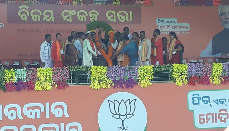 ସମ୍ବଲପୁର, ସାଧାରଣ ନିର୍ବାଚନରେ ପ୍ରଚାର ପରିପ୍ରେକ୍ଷୀରେ ଆସି ପ୍ରଧାନମନ୍ତ୍ରୀ ନରେନ୍ଦ୍ର ମୋଦି ଏଠାରେ ଜନସାଧାରଣ ଙ୍କ ସହିତ ସଙ୍କଳ୍ପ ଓ ନାରା ଦୋହରାଇ ପଦ୍ମଚିହ୍ନ ରେ ଭୋଟ ଦେଇ ଭାରତୀୟ ଜନତା ପାର୍ଟି ର ହାତମୁଠା କୁ ଟାଣ କରିବା ପାଇଁ ଅନୁରୋଧ କଲେ । ସ୍ଥାନୀୟ ରେମେଡ ଛକ ଓ ରାଷ୍ଟ୍ରୀୟ ରାଜମାର୍ଗ ନିକଟସ୍ଥ ଜାଲାନ ଇଷ୍ଟେଟ ପଡିଆ ରେ ଆଜି ଅନୁଷ୍ଠିତ ଭାଜପା ର ନିର୍ବାଚନୀ ସଭାରେ ଏକତ୍ରିତ ଲକ୍ଷାଧିକ ଜନ ସମାବେଶକୁ ମୋଦି ସମ୍ବୋଧିତ କରିଥିଲେ । ମାଧ୍ୟାନ ର ତ୍ରୀପଣ୍ଡ ଖରା ସତ୍ତ୍ୱେ ଘଣ୍ଟାଏ ରୁ ଅଧିକ ସମୟ ଯାଏଁ ଲୋକେ ଧୈର୍ଯ୍ୟର ସହିତ ମୋଦି ଙ୍କ ଆଗମନକୁ ଅପେକ୍ଷା କରିଥିଲେ । ପ୍ରଧାନମନ୍ତ୍ରୀ ଙ୍କ ବିଶେଷ ସୁରକ୍ଷା ଅନୁରୂପେ ସଭାସ୍ଥଳର ଚାରିପଟେ ଓଡିଶା ପୁଲିସ, ସିଆରପିଏଫ ଓ ଏସପିଜି ଏହିପରି ତ୍ରିସ୍ତରୀୟ ସୁରକ୍ଷା ବ୍ୟବସ୍ଥା କରାଯାଇଥିଲା । ଭାଷଣ ରେ କିଛି ସମ୍ବଲପୁରୀ ବାକ୍ୟ ଯୋଡ଼ି ସେ ଶ୍ରୋତାଙ୍କ ମନ ଜିଣି ନେଇଥିଲେ ।