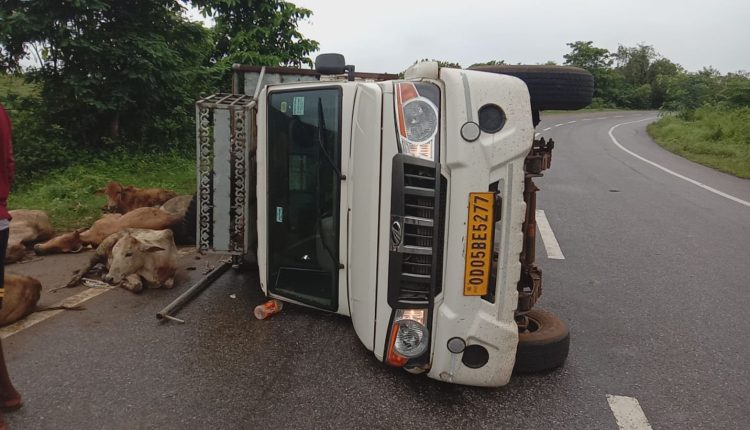 ଦଶପଲ୍ଲା : ଓଲଟିଲା ଗୋରୁ ବୋଝେଇ ପିକଅପ ଭ୍ୟାନ । ଦଶପଲ୍ଲା ଥାନା ଅନ୍ତର୍ଗତ ଟାକରା,ବୁଗୁଡା ନିକଟସ୍ଥ ଖରଡ଼ାପିଟା ଘାଟିରେ ଓଲଟିପଡିଛି ଗୋରୁ ବୋଝେଇ ପିକଅପ ଗାଡି । ୫୭ନଂ ଜାତୀୟ ରାଜପଥ ଦେଇ ପିକଅପ ଗାଡି ବେଆଇନ୍ ଗୋରୁ ବୋଝେଇ କରି ଯାଉଥିବା ବେଳେ ଭାରସାମ୍ୟ ହରାଇ ଏଭଳି ଦୁର୍ଘଟଣା ଘଟିଥିବା ସନ୍ଦେହ କରାଯାଉଛି । ପ୍ରତ୍ୟକ୍ଷଦର୍ଶୀଙ୍କ କହିବା ଅନୁସାରେ ଏହି ପିକଅପ୍ ଗାଡିରେ ପ୍ରାୟ୨୦ଟି ଗୋରୁଙ୍କୁ ଅତି ଅମାନୁଷିକ ଭାବରେ ଲଦି ଚାଲାଣ କରାଯାଉଥିଲା । ଏହି ଦୁର୍ଘଟଣାରେ ବହୁ ଗୋରୁ ଆହତ ହୋଇଥିବା ବେଳେ ଘଟଣାସ୍ଥଳରେ ଦଶପଲ୍ଲା ପୋଲିସ ପହଞ୍ଚି ତଦନ୍ତ ଆରମ୍ଭ କରିଛି । ସ୍ଥାନୀୟ ପ୍ରାଣୀଧନ ନୀରିକ୍ଷକ ତପନ କୁମାର ସାହୁ ଘଟଣାସ୍ଥଳରେ ପହଞ୍ଚି ଆହତ ଗୋରୁ ମାନଙ୍କର ଚିକିତ୍ସା କରିଥିଲେ ।