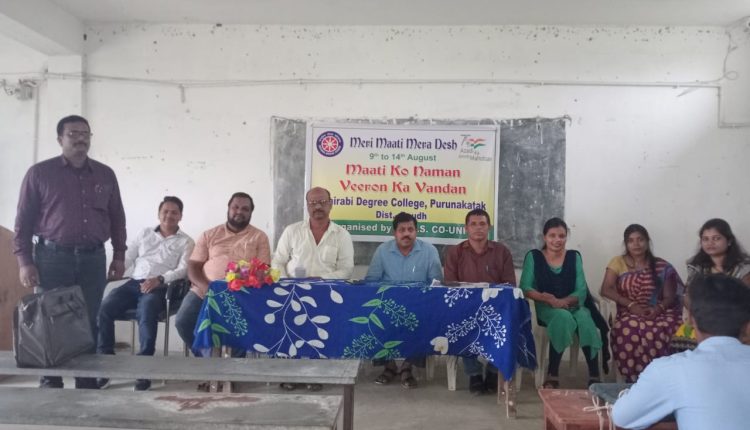 ପୁରୁଣାକଟକ: ହରଭଙ୍ଗା ବ୍ଲକ ପୁରୁଣାକଟକ ସ୍ଥିତ ଭୈରବୀ ଡିଗ୍ରୀ କଲେଜ ପରିସରରେ ଜାତୀୟ ସେବା ଯୋଜନା ଆନୁକୂଲ୍ୟରେ ଅଧ୍ୟକ୍ଷ ରମେଶ ଚନ୍ଦ୍ର ତାରେଣିଆଙ୍କ ଅଧ୍ୟକ୍ଷତାରେ କଲେଜର ମୋ ମାଟି, ମୋ ଦେଶ କାର୍ଯ୍ୟକ୍ରମ ଅନୁଷ୍ଠିତ ହୋଇଯାଇଛି । ଏହି ଅବସରରେ ମୁଖ୍ୟ ଅତିଥି ଭାବେ ବରିଷ୍ଠ ଅଧ୍ୟାପକ ଲଳିତ କୁମାର ମେହେର ଯୋଗ ଦେଇ କାର୍ଯ୍ୟକ୍ରମର ମହତ୍ତ୍ୱ, ଉଦ୍ଦେଶ୍ୟ ଓ ଲକ୍ଷ୍ୟ ସମ୍ପର୍କରେ ଛାତ୍ରଛାତ୍ରୀଙ୍କୁ ଅବଗତ କରାଇଥିଲେ । ଅଧ୍ୟକ୍ଷ ଶ୍ରୀ ତାରେଣିଆ ଛାତ୍ରଛାତ୍ରୀଙ୍କ ମନରେ ଦେଶପ୍ରେମ ଓ ଜାତୀୟ ସଂହତି ସୃଷ୍ଟି ନିମନ୍ତେ ପ୍ରେରଣା ଦେବା ସହ ସ୍ୱାଧୀନତା ଦିବସରେ ଘରେ ଘରେ ତ୍ରିରଙ୍ଗା ପତାକା ଉଡାଇବାକୁ ଉଦବୋଧନ ଦେଇଥିଲେ । ଅଧ୍ୟାପକ ଡ଼କ୍ଟର ପ୍ରମୋଦ କୁମାର ମହାପାତ୍ର, ପୀତବାସ ମେହେର, ଅଧ୍ୟାପିକା ଡ଼ଲି ବେହେରା, ପୂଜା ଦେଓ ପ୍ରମୁଖ ମଞ୍ଚାସୀନ ଥିଲେ । କାର୍ଯ୍ୟକମରେ ଯୁବ ରେଡ଼କ୍ରସ ଜିଲ୍ଲା ସଂଯୋଜକ ସୁରେଶ୍ୱର ଯୋଶୀ ସ୍ୱାଗତ ଭାଷଣ ଦେଇଥିବା ବେଳେ ଜାତୀୟ ସେବା ଯୋଜନା ଅଧିକାରୀ ରଞ୍ଜିତ କୁମାର ସାମଲ ଧନ୍ୟବାଦ ଅର୍ପଣ କରିଥିଲେ ।