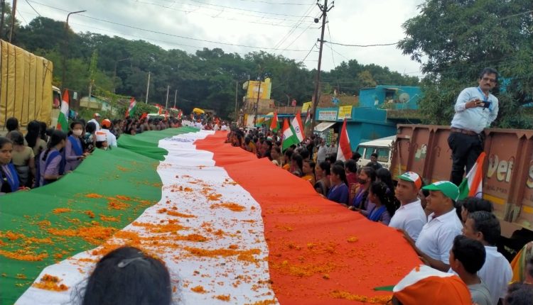 ନବରଙ୍ଗପୁର : ସ୍ୱାଧୀନତାର ୭୫ ବର୍ଷ ଆଜାଦୀ କା ଅମୃତ ମହୋତ୍ସବ ପାଳନ ଅବସରରେ ଆଜି ଦ୍ୱିତୀୟ ଦିନ ନବରଙ୍ଗପୁର ଜିଲ୍ଲା ପରିକ୍ରମାରେ ଜିଲ୍ଲାର ଦଶଟି ବ୍ଲକ୍‌ ଓ ଦୁଇଟି ପୌରପାଳିକାର ବିଭିନ୍ନ ଅଞ୍ଚଳ ପରିକ୍ରମା କରିଛି । ବିଭିନ୍ନ ବ୍ଲକ୍‌ ପୌର ପରିଷଦର ଅଧିକାରୀ, ଲୋକପ୍ରତନିଧି, ଆଶା କର୍ମୀ, ଅଙ୍ଗନୱାଡି କର୍ମୀ, ଛାତ୍ରଛାତ୍ରୀ, ଶିକ୍ଷକ, ଶିକ୍ଷୟତ୍ରୀ, ଜନସାଧାରଣ ଆନନ୍ଦ ଉଲ୍ଲାସର ସହିତ ଅହିଂସା ରଥକୁ ସ୍ୱାଗତ କରିଛନ୍ତି । ନବରଙ୍ଗପୁର ସହରରେ ଏକ ବିରାଟ ଶୋଭଯାତ୍ରା ସ୍ୱାଧିନତା ସଂଗ୍ରାମୀ ମହମ୍ମଦ ବାଜିଙ୍କ ପ୍ରତିମୂର୍ତ୍ତିରୁ ବିଶିଷ୍ଟ ସ୍ୱାଧୀନତା ସଂଗ୍ରାମୀ ତଥା ଓଡ଼ିଶାର ପୂର୍ବତନ ମୁଖ୍ୟମନ୍ତ୍ରୀ ସଦାଶିବ ତ୍ରିପାଠୀଙ୍କ ପାର୍କ ପର୍ଯ୍ୟନ୍ତ ପ୍ରାୟ ଚାରି କିଲୋମିଟରରୁ ଉଦ୍ଧ୍ୱର୍ ରାସ୍ତା ପର୍ଯ୍ୟନ୍ତ ଏକ ଶହ ଫୁଟର ତ୍ରିରଙ୍ଗା ସହିତ ହଜାର ହଜାର ଲୋକଙ୍କ ଉପସ୍ଥିତିରେ ନାଚ ଗୀତ, ସାଂସ୍କୃତିକ କାର୍ଯ୍ୟକ୍ରମ ସହିତ ସହର ପରିକ୍ରମା କରାଯାଇଥିଲା ।