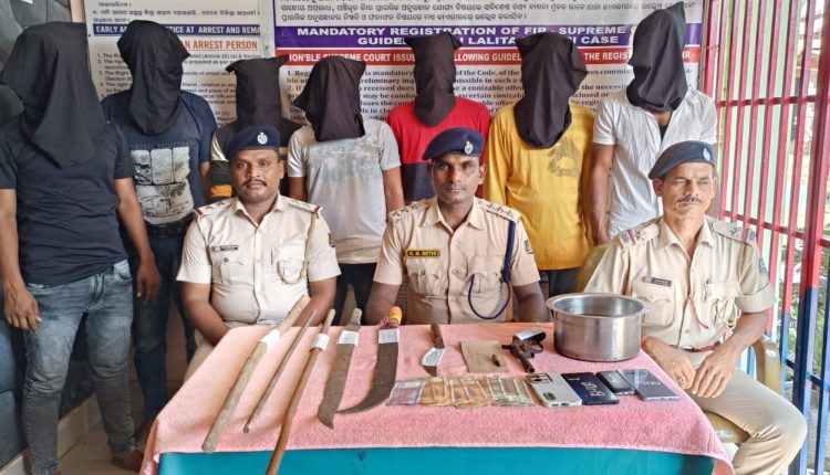 ଏମାନଙ୍କ ଠାରୁ ଗୋଟିଏ ବନ୍ଧୁକ, ଗୋଟିଏ ଅଫୁଟା ଗୁଳି, ଦୁଇଟି ଖଣ୍ଡା, ଗୋଟିଏ ଲୁହାରଡ୍, ଗୋଟିଏ ଭୂଜାଲି, ଗୋଟିଏ ଲାଠି, ୨ଟି ଅଫୁଟା ବୋମା, ଗୋଟିଏ ଟର୍ଚ୍ଚଲାଇଟ୍, ବୋମା ପ୍ରସ୍ତୁତ କରିବା ସାମଗ୍ରୀ, ଦୁଇଟି ଖାଲି ବିଅର ବୋତଲ, ଗୋଟିଏ ସ୍କୁଟି, ୪ଟି ମୋବାଇଲ ଫୋନ୍ ଜବତ ହୋଇଛି । ଏନେଇ ପୁଲିସ ଏକ ମାମଲା(ନଂ-୧୦୬/୨୩) ରୁଜୁ କରି ଅଭିଯୁକ୍ତମାନଙ୍କୁ କୋର୍ଟ ଚାଲାଣ କରିଛି । ଜାମିନ ଖାରଜ ହେବାରୁ ସମସ୍ତଙ୍କୁ ବିଚାର ବିଭାଗୀୟ ହାଜତକୁ ପଠାଇ ଦିଆଯାଇଛି ।
