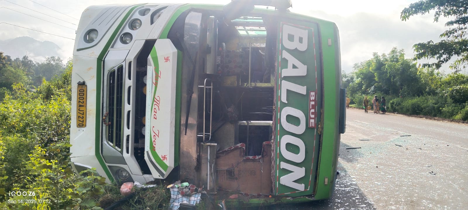 ଦଶପଲ୍ଲା: ନୟାଗଡ଼ ଜିଲ୍ଲା ବାଣୀଗୋଛା ଥାନା ଜାମୁସାହି ଛକ ନିକଟ ଦୁଡିକିପାଜୁ ଠାରେ ଏକ ଘରୋଇ ଯାତ୍ରୀବାହୀ ବସ୍ ଓଲଟିଛି। ଏହାଫଳରେ କଣ୍ଡକ୍ଟର ଗୁରୁତର ଥିବାବେଳେ ୫ରୁ ଅଧିକ ଯାତ୍ରୀ ସାମାନ୍ୟ ଆହତ ହୋଇଛନ୍ତି।