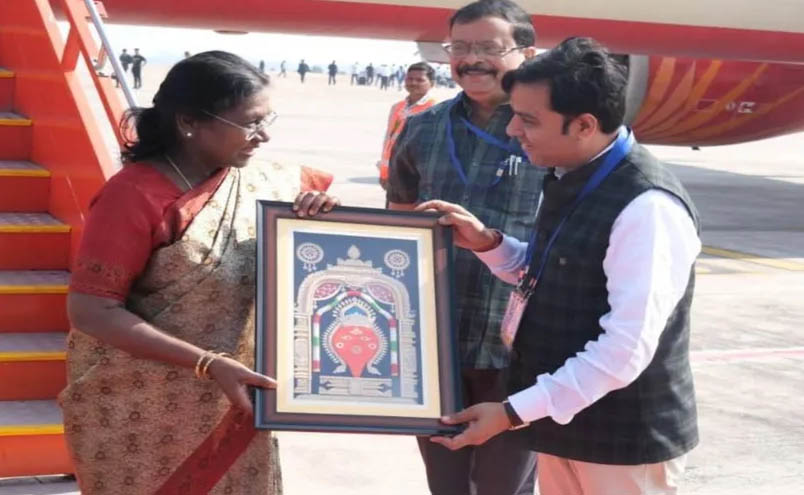 ଝାରସୁଗୁଡା: ଝାରସୁଗୁଡା ବିମାନ ବନ୍ଦରରେ ରାଷ୍ଟ୍ରପତି ଦ୍ରୌପଦୀ ମୁର୍ମୁ ଗୁରୁବାର ପହଞ୍ଚିଛନ୍ତି। ରାଷ୍ଟ୍ରପତି ଶ୍ରୀମତୀ ମୁର୍ମୁ ବାୟୁସେନାର ସ୍ୱତନ୍ତ୍ର ବିମାନରେ ଝାରସୁଗୁଡା ବିମାନ ବନ୍ଦରରେ ଅବତରଣ କରିବା ପରେ ରାଜ୍ୟ ସରକାର, ଜିଲ୍ଲା ପ୍ରଶାସନ ପକ୍ଷରୁ ତାଙ୍କୁ ଭବ୍ୟ ସ୍ୱାଗତ ପ୍ରଦାନ କରାଯାଇଥିଲା। ରାଜସ୍ବ ମନ୍ତ୍ରୀ ସୁରେଶ ପୂଜାରୀ, ବିଧାୟକ ଟଙ୍କଧର ତ୍ରିପାଠୀ, ଏଡିଜି ସନ୍ତୋଷ ବାର୍ଲା, ଜିଲ୍ଲାପାଳ କୁନାଲ ମୋତିରାମ ଚୌହ୍ୱାନ, ଏସପି ଜି ଆର ରାଘବେନ୍ଦ୍ର ପ୍ରମୁଖ ରାଷ୍ଟ୍ରପତିଙ୍କୁ ସ୍ୱାଗତ କରିଥିଲେ।