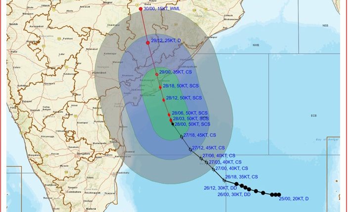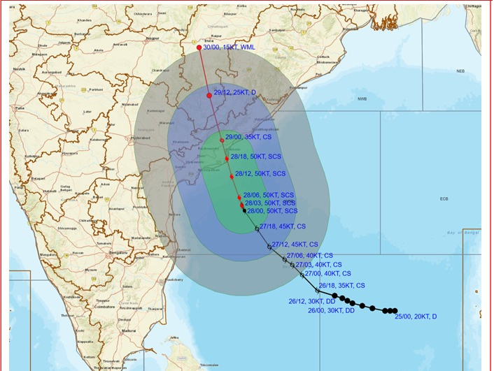 ଭୁବନେଶ୍ୱର:ସମୁଦ୍ର ମଧ୍ୟରେ ଭୀଷଣ ବାତ୍ୟାର ରୂପ ନେଇଛି ‘ମୋନ୍ଥା’। ଘଣ୍ଟା ପ୍ରତି ୧୫ କିମି ବେଗରେ ଗତି କରି ନିକଟତର ହେଉଛି। ଏବେ ମଛଲିପଟନମ ଠାରୁ ୧୯୦, କାକିନାଡ଼ାଠାରୁ ୨୭୦ କିମି ଦୂରରେ ଅଛି ‘ମୋନ୍ଥା’। ସେହିପରି ଗୋପାଳପୁର ଠାରୁ ୫୭୦ କିମି ଦୂରରେ ଅଛି। ଆଜି ସଂଧ୍ୟା କିମ୍ବା ରାତିରେ ସ୍ଥଳଭାଗ ଛୁଇଁବ ‘ମୋନ୍ଥା’। ଏହା ଆନ୍ଧ୍ର ଉପକୂଳ କାକିନାଡ଼ା ଦେଇ ଅତିକ୍ରମ କରିବ । ଲ୍ୟାଣ୍ଡଫଲ ବେଳେ ପବନର ସର୍ବାଧିକ ବେଗ ୧୧୦ କିମି ରହିବ। ଲ୍ୟାଣ୍ଡଫଲ୍ ପୂର୍ବରୁ କାକିନାଡ଼ା ବେଳାଭୂମି ରାସ୍ତା ଧେଶଇହୋଇଯାଇଛି। ମୋନ୍ଥା ପ୍ରଭାବରେ କାକିନାଡ଼ାରେ ସମୁଦ୍ର ଅଶାନ୍ତ ହୋଇପଡ଼ିଛି। ଉଚ୍ଚ ଉଚ୍ଚ ଜୁଆର ସହ ପବନର ବେଗ ବଢୁଛି। ବେଳାଭୂମି ରାସ୍ତା ଉପରକୁ ମାଡ଼ି ଆସୁଛି ସମୁଦ୍ର ପାଣି। ଫଳରେ ୮ କିମିର କାକିନାଡ଼ା ଓ ଉପପଡ଼ା ବେଳାଭୂମି ରାସ୍ତା କ୍ଷତିଗ୍ରସ୍ତ ହୋଇଛି।