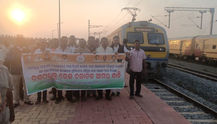 ନୂଆଗାଁ : ନୟାଗଡ଼ ଜିଲ୍ଲାର ଦଶପଲ୍ଲାକୁ ରେଳ ଚଳାଚଳ ଦାବି ନେଇ ଆଜି କଂଗ୍ରେସ ଦଳ ତରଫରୁ ନୂଆଗାଁ ବ୍ଲକର ମହିପୁର ଷ୍ଟେସନ ଠାରେ ବିକ୍ଷୋଭ ପ୍ରଦର୍ଶନ କରାଯାଇଥିଲା । ବରିଷ୍ଠ କଂଗ୍ରେସ ନେତା ତଥା ଜିଲ୍ଲା ସଭାପତି ରଣଜିତ୍ ଦାଶ, ନୟାଗଡ଼ ଜିଲ୍ଲା କଂଗ୍ରେସ ଓବିସି ସେଲ୍ ଅଧ୍ୟକ୍ଷ ନାରାୟଣ ସାହୁ, ନୟାଗଡ଼ ଜିଲ୍ଲା କଂଗ୍ରେସ ରାଜିବ ଗାନ୍ଧି ସଙ୍ଗଠନର ସଂଯୋଜକ ସୁକାନ୍ତ କୁମାର ଶତପଥୀ, ଏଆଇସିସି ସଭ୍ୟ ବିସ୍ମୟ ମହାପାତ୍ର, ନୂଆଗାଁ ବ୍ଲକ୍ କଂଗ୍ରେସ ସଭାପତି ଅଶୋକ କୁମାର ନାୟକ, ଦଶପଲ୍ଲା ବ୍ଲକ କଂଗ୍ରେସ ସଭାପତି ବୁଲୁ ପରିଡା,ଗଣିଆ ବ୍ଲକ କଂଗ୍ରେସ ସଭାପତି କାଶୀନାଥ ନାଏକ ଏବଂ ଦଶପଲ୍ଲା, ନୂଆଗାଁ ବ୍ଲକର ୨୦୦ କଂଗ୍ରେସ କର୍ମୀ ମହିପୁର ଷ୍ଟେସନରେ ଯୋଗ ଦେଇ ବିକ୍ଷୋଭ ସହ ଶୋଭାଯାତ୍ରା କରିଥିଲେ ଏଥି ନେଇ ରେଳ ଚଳାଚଳ କିଛି ସମୟ ପାଇଁ ବନ୍ଦ କରାଯାଇ ଦଶପଲ୍ଲାକୁ ଯଥାଶୀଘ୍ର ରେଳ ଚଳାଚଳ ପାଇଁ ଦାବି କରାଯାଇ ସ୍ଲୋଗାନ ଦିଆଯାଇଥିଲା ।