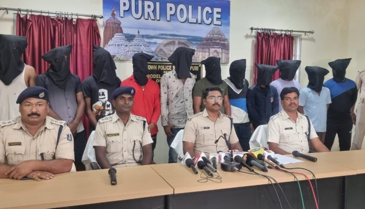 ପୁରୀ ପୁଲିସକୁ ବଡ ସଫଳତା, ଡକାୟତି ଓ ଦାଦାବାଟି ଆଦାୟ ଅଭିଯୋଗରେ ୧୨ ଗିରଫ