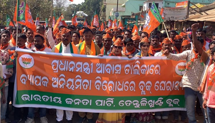 ନବରଙ୍ଗପୁର: ତେନ୍ତୁଳିଖୁଣ୍ଟି ବ୍ଲକ ବିଜେପି ତରଫରୁ ଜିଲ୍ଲା ସଭାପତି ଜଗଦିଶ ବିଷୋୟୀ, ରାଜ୍ୟ କାର୍ଯ୍ୟକାରିଣୀ ସଦସ୍ୟ ତଥା ବିଧାୟକ ପ୍ରାର୍ଥୀ ଗୌରୀ ଶଙ୍କର ମାଝୀ ଓ ବ୍ଲକ ପ୍ରଭାରୀ କାହ୍ନୁ ଦାସଙ୍କ ନେତୃତ୍ୱରେ ପ୍ରଧାନମନ୍ତ୍ରୀ ଆବାସ ଯୋଜନାରେ ବ୍ୟାପକ ଦୁର୍ନୀତି, ଅଯୋଗ୍ୟ ହିତାଧିକାରୀଙ୍କୁ ଆବାସ ଗୃହ ଯୋଗାଇ ଦେବା, ଅଁଳାଭଟା ପଞ୍ଚାୟତରେ ଗରିବ କଲ୍ୟାଣ ଅନ୍ନ ଯୋଜନାରେ କେନ୍ଦ୍ର ସରକାରଙ୍କ ମାଗଣାରେ ମିଳୁଥିବା ତିନିମାସର ବକେୟା ଚାଉଳ ନ ପାଇବା ଇତ୍ୟାଦି ଦାବି ନେଇ ବ୍ଲକ ଅଫିସ ଘେରାଉ ସହ ଗୋଷ୍ଠୀ ଉନ୍ନୟନ ଅଧିକାରୀଙ୍କୁ ମୁଖ୍ୟମନ୍ତ୍ରୀଙ୍କ ଉଦ୍ଦେଶ୍ୟରେ ଦାବିପତ୍ର ପ୍ରଦାନ କରାଗଲା । ତତ୍ସଙ୍ଗେ ଅଯୋଗ୍ୟ ହିତାଧୀକାରୀଙ୍କୁ ବାଦ ଦେଇ ଆବାସ ଯୋଜନାର ନିର୍ଦ୍ଦେଶନାମା ଓ ନିୟମାବଳୀକୁ ଗୁରୁତର ସହ ପାଳନ ପୂର୍ବକ ଜଣେ ବି ଯୋଗ୍ୟ ହିତାଧିକାରୀ ଆବାସ ଯୋଜନାରୁ ବଞ୍ଚିତ ନ ହେବେ ତାହା ସୁନିଶ୍ଚିତ କରିବାକୁ ଦୃଢ ଦାବି ଜଣାଇ ଥିଲେ । ପ୍ର.ମ ଆବାସ ପାଇବା ପାଇଁ ୧୦୫୫ ଯୋଗ୍ୟ ହିତାଧିକାରୀଙ୍କ ଆବେଦନ ପତ୍ର ଦିଆଗଲା ।