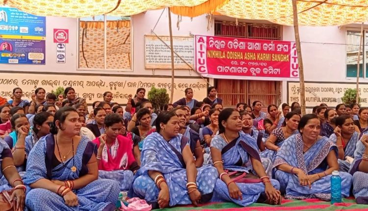 ନିଖିଳ ଓଡିଶା ଆଶାକର୍ମୀ ପାଟଣାଗଡ ସଂଘ ଶାଖା ପକ୍ଷରୁ ଘସିଏନ ଗୋଷ୍ଠୀ ସ୍ୱାସ୍ଥ୍ୟକେନ୍ଦ୍ର ସମ୍ମୁଖରେ ଧାରଣା
