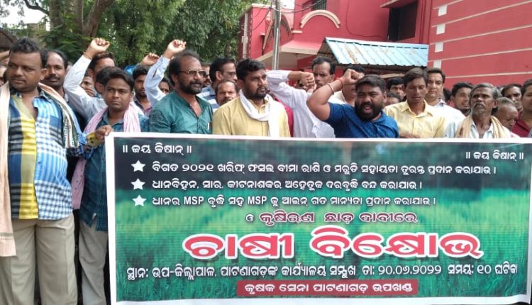 ସ୍ଥାନୀୟ ଗଙ୍ଗାଧର ପାର୍କ ଠାରେ କୃଷକ ସେନା ସୌରୀ ସାହୁଙ୍କ ନେତୃତ୍ୱରେ ଚାଷୀ ମାନେ ଏକତ୍ରିତ ହୋଇ ଏକ ଶୋଭାଯାତ୍ରାରେ ବାହାରି ଉପଜିଲ୍ଲାପାଳଙ୍କ କାର୍ଯ୍ୟାଳୟ ସମ୍ମୁଖରେ ବିକ୍ଷୋଭ ପ୍ରଦର୍ଶନ କରିବା ସହ ବିଭିନ୍ନ ନାରାବାଜି ଦେଇଥିଲେ । ୧୧ଦଫା ଦାବି ର ସମାଧାନ ଆଗାମୀ ୧୦ ଦିନ ମଧ୍ୟରେ ସମାଧାନ ନହେଲେ ସମସ୍ତ ସରକାରୀ ଅଫିସରେ ତାଳା ପକାଇ ଧାରଣା ଦେବା ସହ ସରକାରୀ ଅଫିସକୁ ଅଚଳ କରିବାକୁ କୃଷକ ସେନା ପକ୍ଷରୁ ଚେତାବନୀ ଦିଆଯାଇଛି । ଏଥିରେ ରାଷ୍ଟ୍ରିୟ କିସାନ ମହଜୁର ମହାସଂଘର ରାଜ୍ୟ ସଭାପତି ସଚିନ ମହାପାତ୍ର , ଆଞ୍ଚଳିକ ଜୟ କିସାନ କୃଷକ ଜୁରିଆ ସଭାପତି ଗୋପବନ୍ଧୁ ସାହୁ , ବିପିନ ବରିହା, କୁରେଶର ବରିହା, ମିତ୍ରଭାନୁ ସାହୁ ,ରବି ଚନ୍ଦ୍ର ସାହୁ ,କେଚକେଜା ସାହୁ , ମିନକେତନ ସାହୁ , ଶଙ୍କର ସାହୁ, ସରୋଜ ସାହୁ, ସୁଦନ ସାହୁ, ବଳଦେବ ପଣ୍ଡା, ଦୁଆନୁ ପଣ୍ଡା, ଉମେଶ କୁମାର ଦାସ ,ଭିମସେନ ଦାସ, ଶମ୍ଭୁ ତଣ୍ଡକାର, ରାତୁ ବରିହା, ଶ୍ୟାମ ତାଣ୍ଡି , ଲିଙ୍ଗରାଜ ପଣ୍ଡା, ପ୍ରଫୁଲ୍ଲ ପଣ୍ଡା, ବିଶିକେସନ ସାହୁ, ନାରାୟଣ ସେଠ, ରାମପ୍ରସାଦ ପଣ୍ଡା,କଲାରୁ ପଣ୍ଡା ପ୍ରମୁଖଙ୍କ ସହ ଶତାଧିକ ଚାଷୀ ଉପସ୍ଥିତ ଥିଲେ ।