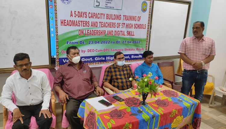ବୌଦ୍ଧ :ବୌଦ୍ଧ ଜିଲ୍ଲାସ୍ତରୀୟ ୫-ଟି ହାଇସ୍କୁଲ ପ୍ରଧାନ ଶିକ୍ଷକ ଓ ଶିକ୍ଷକ ମାନଙ୍କ ଦକ୍ଷତା ବୃଦ୍ଧି ଏବଂ ଡିଜିଟାଲ ଜ୍ଞାନ କୌଶଳ ଅଭିବୃଦ୍ଧି ତାଲିମ ସ୍ଥାନୀୟ ସରକାରୀ ବାଳିକା ଉଚ୍ଚ ବିଦ୍ୟାଳୟର ସ୍ମାର୍ଟ କ୍ଲାସରୁମ ପରିସରରେ ଉଦଘାଟିତ ହୋଇଯାଇଛି । ଜିଲ୍ଲା ଅତିରିକ୍ତ ଶିକ୍ଷା ଅଧିକାରୀ ଘନଶ୍ୟାମ ମେହେର ସଭାପତିତ୍ୱ କରିଥିବାବେଳେ ବୌଦ୍ଧ ଗୋଷ୍ଠୀ ଶିକ୍ଷା ଅଧିକାରୀ ଧ୍ରୁବ ଚରଣ ଘିବେଲା କାର୍ଯ୍ୟକ୍ରମ ପରିଚାଳନା କରିଥିଲେ । ଜିଲ୍ଲା ବିଜ୍ଞାନ ନିରୀକ୍ଷକ ଦେବେନ୍ଦ୍ର କୁମାର ଦେହୁରୀ ଅତିଥି ପରିଚୟ ରଖିଥିଲେ । ପିରାମିଲ ଫାଉଣ୍ଡେସନର ଜୟଶଙ୍କର ବାଘ, ଆମ୍ବଗାଁ ହାଇସ୍କୁଲର ପ୍ରଧାନ ଶିକ୍ଷକ ଶୁକଦେବ ପଣ୍ଡା, ଜିଲ୍ଲା ଯୋଜନା ସଂଯୋଜକ ଦେବାଶିଷ ଦ୍ୱାରି, ଜିଲ୍ଲା ଶୈକ୍ଷିକ ସଂଯୋଜକ ଶିବଶଙ୍କର ଶତପଥୀ, ଏମ ଆଇ ଏସ କୋଡିନେଟର ସୂର୍ଯ୍ୟନାରାୟଣ ପଟ୍ଟନାୟକ ଓ ଡାଟା ଏଣ୍ଟ୍ରି ଅପରେଟର ଶଙ୍କର ମେହର ଉପସ୍ଥିତ ରହି ବିଭିନ୍ନ ଡିଜିଟାଲ କୌଶଳ ଉପରେ ଆଲୋଚନା କରିଥିଲେ । ପ୍ରକାଶ ଥାଉକି ଏହି ତାଲିମ ୨୩/୪/୨୨ରିଖ ଠାରୁ ତା ୨୭/୪/୨୨ରିଖ ଯାଏ ଚାଲିବାର ଯୋଜନା ରହିଛି ।