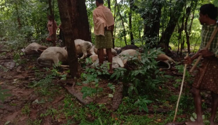 ଦଶପଲ୍ଲା : -ନୟାଗଡ଼ ଜିଲ୍ଲା ଦଶପଲ୍ଲା ବ୍ଲକ୍ ଅନ୍ତର୍ଗତ ଆଦିବାସୀ ଅଧ୍ୟୁଷିତ କୁଜାମେଣ୍ଢି ଗ୍ରାମପଞ୍ଚାୟତ ବଣିଗ୍ରାମ ନିକଟବର୍ତ୍ତୀ ତଳ ମୁଣ୍ଡଳା ଗ୍ରାମରେ ବିଜୁଳି ଆଘାତରେ ୧୭ ଗୋଟି ଗାଈ ଓ ବଳଦ ମୃତ୍ୟୁବରଣ କରିଛନ୍ତି । ଆଜି ଅପରାହ୍ନ ୧ ଘଟିକା ସମୟରେ ଅଚାନକ ଘଡଘଡି ସହିତ ପ୍ରବଳ ବର୍ଷା ସାଂଗକୁ ଘନଘନ ବଜ୍ରପାତ ହୋଇଥିଲା । ଏହି ସମୟରେ ସ୍ଥାନୀୟ ଜଂଗଲରେ ଗାଈଗୋରୁମାନେ ଚରୁଥିବା ବେଳେ ବଜ୍ରପାତ ଘଟିଥିଲା । ଏହି ବଜ୍ରପାତରୁ ଗୋରୁଚରାଳି ଅଳ୍ପକେ ରକ୍ଷାପାଇ ଯାଇଥିବାବେଳେ ଭୟଙ୍କର ବଜ୍ରପାତରେ ୧୭ ଗୋଟି ଗାଈବଳଦଙ୍କର ମୃତ୍ୟୁ ହୋଇଛି ।