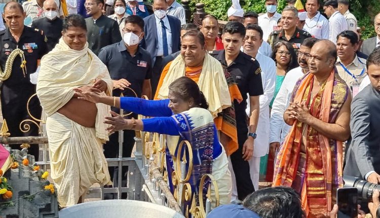 ଶ୍ରୀମନ୍ଦିରକୁ ଯାଇ ଗର୍ଭଗୃହରେ ମହାପ୍ରଭୁଙ୍କ ଦର୍ଶନ ସହ ପୂଜାର୍ଚ୍ଚନା କରିଥିଲେ ରାଷ୍ଟ୍ରପତି ଦ୍ରୌପଦୀ ମୁର୍ମୁ । ମନ୍ଦିର ପରିସରରେ ଥିବା ମା ବିମଳା, ମହାଲକ୍ଷ୍ମୀ ଓ ଅନ୍ୟାନ୍ୟ ପାର୍ଶ୍ୱ ଦେବଦେବୀ ମନ୍ଦିର ବୁଲି କୌଳିକ ପଣ୍ଡାଙ୍କ ଦର୍ଶନ ଖାତାରେ ଦସ୍ତଖତ କରିଥିଲେ । ରାଷ୍ଟ୍ରପତିଙ୍କ ସହ ରାଜ୍ୟପାଳ ଗଣେଶି ଲାଲ୍‌, କେନ୍ଦ୍ରମନ୍ତ୍ରୀ ଧର୍ମେନ୍ଦ୍ର ପ୍ରଧାନ ମଧ୍ୟ ଏହି ଗସ୍ତରେ ସାମିଲ ହୋଇଥିଲେ । ଦର୍ଶନ ସାରି ରାଷ୍ଟ୍ରପତି ଫେରିବା ପରେ ସିଂହଦ୍ୱାର ସମ୍ମୁଖରେ ଶ୍ରୀମନ୍ଦିର ପ୍ରଶାସନ ଓ ସେବାୟତ ନିଯୋଗ ପକ୍ଷରୁ ଜଗନ୍ନାଥଙ୍କ ପ୍ରତିମୂର୍ତ୍ତି ଦିଆଯାଇ ସମ୍ବର୍ଦ୍ଧିତ କରାଯାଇଥିଲା । ପରେ ସିଂହଦ୍ୱାର ନିକଟରେ ଥିବା ଉତ୍କଳମଣି ପଣ୍ଡିତ ଗୋପବନ୍ଧୁ ଦାସଙ୍କ ପ୍ରତିମୂର୍ତ୍ତିରେ ମାଲ୍ୟାର୍ପଣ କରିଥିଲେ ରାଷ୍ଟ୍ରପତି । ପରେ ପୁରୀ ରାଜଭବନକୁ ପ୍ରତ୍ୟାବର୍ତ୍ତନ କରି ସେଠାରେ ମହାପ୍ରସାଦ ସେବନ କରିଥିଲେ ।