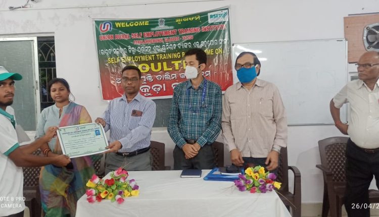 ପାରଳାଖେମୁଣ୍ଡି : ଗଜପତି ଜିଲ୍ଲା ସଦର ମହକୁମା ପାରଳାଖେମୁଣ୍ଡି ଠାରେ ଥିବା ୟୁନିୟନ ଗ୍ରାମ୍ୟ ଆତ୍ମନିଯୁକ୍ତି ପ୍ରଶିକ୍ଷିଣ ଅନୁଷ୍ଠାନରେ ଗତ ୧୦ ଦିନ ଧରି ଚାଲିଥିବା କୁକୁଡା ପାଳନ ତାଲିମ କାର୍ଯ୍ୟକ୍ରମର ଉଦ୍ଯାପିତ ହୋଇଯାଇଛି । ଗତ ୧୮.୦୪.୨୦୨୨ ଠାରୁ ଆରମ୍ଭ ହୋଇଥିବା କୁକୁଡା ପାଳନ ତାଲିମ କାର୍ଯ୍ୟକ୍ରମରେ ଗଜପତି ଜିଲ୍ଲାର ନୂଆଗଡ ବ୍ଲକରୁ ମୋଟ ୩୦ ଜଣ ପୁରୁଷ ଏବଂ ମହିଳା ତାଲିମ ନେଇଥିଲେ । ସମସ୍ତ ପ୍ରତିଭାଗୀ ମାନଙ୍କ ପାଇଁ ଅନୁଷ୍ଠାନରେ ରହିବା, ଖାଇବା ମାଗଣା ସହିତ ଯାତାୟତ ଭତ୍ତା ମଧ୍ୟ ପ୍ରଦାନ କରଯାଇଥିଲା । ଏହି ଅବସରରେ ଏକ ଉଦଯାପନୀ ସଭା ଅନୁଷ୍ଠିତ ହୋଇଥିଲା । ଏଥିରେ ଅନୁଷ୍ଠାନର ନିର୍ଦ୍ଦେଶକ ଅଚ୍ୟୁତାନନ୍ଦ ବ୍ରହ୍ମା ସଭାପତିତ୍ୱରେ ଗଜପତି ଜିଲ୍ଲା ନାବାର୍ଡ ବିକାଶ ପ୍ରବନ୍ଧକ ପ୍ରତୀକ ପଣ୍ଡା ମୁଖ୍ୟ ଅତିଥି ରୂପେ ଯୋଗ ଦେଇଥିଲେ । ଅନ୍ୟମାନଙ୍କ ମଧ୍ୟରେ ଗଜପତି ଜିଲ୍ଲା ଅଗ୍ରଣୀ ବ୍ୟାଙ୍କ ପ୍ରବନ୍ଧକ କିଶୋର ଚନ୍ଦ୍ର ନାଇକ ସମ୍ମାନିତ ଅତିଥି ରୂପେ ଯୋଗ ଦେଇଥିଲେ । ସମସ୍ତ ଅତିଥି ଏବଂ ଅନୁଷ୍ଠାନର ନିର୍ଦ୍ଦେଶକ ପ୍ରତିଭାଗୀମାନଙ୍କୁ ସାର୍ଟିଫିକଟ ପ୍ରଦାନ କରିବା ସଙ୍ଗେସଙ୍ଗେ ଭାଷଣ ମାଧ୍ୟମରେ ବିଭିନ୍ନ ଉଦାହରଣ ଦେଇ ଭବିଷ୍ୟତରେ ଆତ୍ମନିଯୁକ୍ତ ହୋଇ ଉତ୍ତରୋତ୍ତର ଉନ୍ନତି କରିବାକୁ ପରାମର୍ଶ ଦେଇଥିଲେ । ଅନୁଷ୍ଠାନର ପ୍ରାଧ୍ୟାପକ ଦିଲ୍ଲୀପ କୁମାର ତନ୍ତି କାର୍ଯ୍ୟକ୍ରମ ପରିଚାଳନା କରିବା ସହିତ ଶେଷରେ ଅନୁଷ୍ଠାନର ଅନ୍ୟତମ ପ୍ରାଧ୍ୟାପିକା ଶ୍ରୀମତୀ ଦିକ୍ଷ୍ୟାଶ୍ରୀ ମହାପାତ୍ର ଧନ୍ୟବାଦ ଅର୍ପଣ କରିଥିଲେ ।