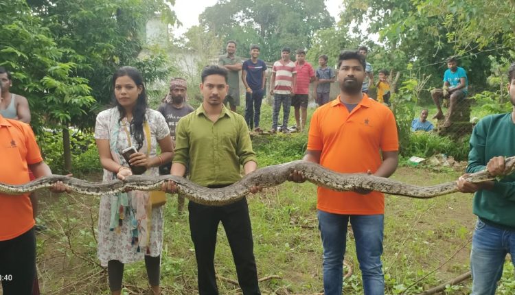 ଫୁଲବାଣୀ : ଫୁଲବାଣୀ ସହରଠୁ ପ୍ରାୟ ୫ କିଲୋମିଟର ଦୂର କଲାଡି ଗ୍ରାମ ଅମିତ କହଁରଙ୍କ ବଗିଚାରେ ଏକ ୧୨ଫୁଟର ଅଜଗର ସାପ ପଶି ଆସିଥିବା ନେଇ କଲାଡି ଗ୍ରାମର ସଂଜୀବ କହଁର ଟିମ୍ ହ୍ୟୁମାନିଟି କନ୍ଧମାଳ ସ୍ନେକ ହେଲ୍ପଲାଇନ ସଦସ୍ୟଙ୍କୁ ଯୋଗାଯୋଗ କରିଥିଲେ । ସମୟ ନଷ୍ଟ ନ କରି ତୁରନ୍ତ ଟିମର ଆବାହକ ଭି. ଲୋକନାଥ ରାଜୁଙ୍କ ନେତୃତ୍ୱରେ ଟିମ୍ ସଦସ୍ୟ ଭି. ଜଗନ୍ନାଥ ରାଜୁ, ସାଇରାମ ପାତ୍ର, ଆଲୋକ କୁମାର ବିଶୋଇ, ପ୍ରଫୁଲ କୁମାର ପୃଷ୍ଟି , ସସ୍ମିତା ସାହୁ, ଏସ କେ ଅବଦୁଲ ସାକୀର, ଅନୁପ ବିକ୍ରମ ପାତ୍ର, ରମେଶ ଚନ୍ଦ୍ର ମହାନ୍ତି ଏବଂ ରବୀନ୍ଦ୍ର ମହାରଣା ଉକ୍ତ ସ୍ଥାନରେ ପହଞ୍ଚିଥିଲେ । ଆକାରରେ ବଡ଼ ଥିବା ସାପଟିକୁ ଦେଖି ଗାଁ ଲୋକେ ଭୟଭୀତ ହୋଇପଡ଼ିଥିଲେ । ଟିମ୍ ସଦସ୍ୟ ଦ୍ୱାରା ସୁରକ୍ଷିତ ଭାବେ ଉଦ୍ଧାର କରାଯାଇ ଗାଁ ଠାରୁ ଦୂର ଜଙ୍ଗଲରେ ଛାଡ଼ି ଦିଆଗଲା । ଟିମର ତତ୍ପରତା ଏବଂ ସାହାସ୍ ପାଇଁ ଗାଁ ଲୋକେ ସାଧୁବାଦ ଜଣାଇଛନ୍ତି ।
