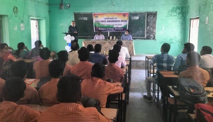 ସୁବର୍ଣ୍ଣପୁର : ଦୁର୍ନୀତି ନିବାରଣ ସଚେତନତା ସପ୍ତାହ ପାଳନ ଅବସରରେ ସୋନପୁର ସରକାରୀ ମହାବିଦ୍ୟାଳୟ ଓ ଜିଲ୍ଲା ଦୁର୍ନୀତି ବିଭାଗ ଆନୁକୂଲ୍ୟରେ ଦୁର୍ନୀତି ମୁକ୍ତ ସମାଜ ଗଠନ ତଥା ସ୍ୱଚ୍ଛତା ଓ ବ୍ୟବସ୍ଥିତ କରିବା ଉଦ୍ଦେଶ୍ୟରେ ଛାତ୍ରଛାତ୍ରୀଙ୍କ ମଧ୍ୟରେ ସଚେତନତା ନିମିତ୍ତ ମହାବିଦ୍ୟାଳୟ ପରିସରରେ ସଚେତନତା ସଭା ଅନୁଷ୍ଠିତ ହୋଇଯାଇଛି । ଏହି ସଚେତନତା ସଭା ମହାବିଦ୍ୟାଳୟ ପ୍ରିନ୍ସିପାଲ ପ୍ରଫେସର ରାଜୀବ ଲୋଚନ ଆଚାର୍ଯ୍ୟଙ୍କ ସଭାପତିତ୍ୱରେ ଅନୁଷ୍ଠିତ ହୋଇଯାଇଛି । ଅନୁଷ୍ଠିତ ସଭାରେ ମୁଖ୍ୟ ଅତିଥିଭାବେ ତୁଷାର କାନ୍ତ ମହାପାତ୍ର ଇନିସ୍ପେକ୍ଟର ଭିଜିଲେନ୍ସବତଥା ଅନ୍ୟତମ ଅତିଥିଭାବେ ସୌରଭ ରଞ୍ଜନ ଖମାରୀ, ଓଡ଼ିଆ ଅଧ୍ୟାପକ ଯୋଗଦାନ କରି ଛାତ୍ରଛାତ୍ରୀଙ୍କୁ ଉଦବୋଧନ ଦେଇଥିଲେ । ଲେଫ୍ଟନାଣ୍ଟ ଆଶିଷ କୁମାର ଅଗ୍ରୱାଲ ଧନ୍ୟବାଦ ଅର୍ପଣ କରିଥିଲେ । ଏହି ସଚେତନତା ସଭା ଅବସରରେ ମହାବିଦ୍ୟାଳୟ ତରଫରୁ ଅନୁଷ୍ଠିତ ବିଭିନ୍ନ ପ୍ରତିଯୋଗିତାର କୃତି ପ୍ରତିଯୋଗୀଙ୍କୁ ଅତିଥି ବୃନ୍ଦ ପୁରସ୍କୃତ କରିଥିଲେ । ସଭାରେ ମହାବିଦ୍ୟାଳୟର ଶତାଧିଜ ଛାତ୍ରଛାତ୍ରୀ ସହ ଅଧ୍ୟାପକ ଅଧ୍ୟାପିକା ସମେତ ଦୁର୍ନୀତି ବିଭାଗ ଅଧିକାରୀ, କର୍ମଚାରୀ ପ୍ରମୁଖ ଉପସ୍ଥିତ ରହିଥିଲେ ।