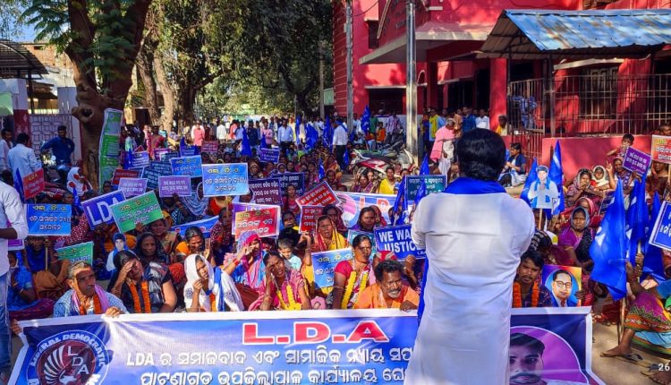 ପାଟଣାଗଡ଼: ପାଟଣାଗଡ଼ ଉପଖଣ୍ଡରେ ଅନେକ ଦିନରୁ ଗ୍ରାମାଞ୍ଚଳମାନଙ୍କରେ ଲାଗି ରହିଥିବା ସମସ୍ୟା ଗୁଡିକୁ ପ୍ରଶାସନ ନିକଟରେ ଗ୍ରାମବାସୀ ଅଭିଯୋଗ କରି ଆସୁଥିଲେ ସୁଦ୍ଧା ସରକାରୀ ଅଧିକାରୀଙ୍କ ଉଦାସୀନତା ମନୋଭାବ ଯୋଗୁଁ କୌଣସି ସୁଫଳ ମିଳୁନାହଁ । ଏନେଇ ଆଜି ଏଲଡିଏ ସଂଗଠନ ତରଫରୁ ଲବ ସୁନାଙ୍କ ନେତୃତ୍ୱରେ ପ୍ରାୟ ଶତାଧିକ ମହିଳା ଓ ପୁରୁଷ ଏକତ୍ରିତ ହୋଇ ପାଟଣାଗଡ଼ ସ୍ଥିତ ଗଡଭିତର ସ୍ଥିତ ଯାତ୍ରାପଡିଆରୁ ଏକ ବିଶାଳ ଶୋଭାଯାତ୍ରାରେ ବାହାରି ରାଜ୍ୟ ସରକାରଙ୍କ ବିରୁଦ୍ଧରେ ନାରାବାଜି ଦେଇ ଉପଜିଲ୍ଲାପାଳଙ୍କ କାର୍ଯ୍ୟାଳୟ ସମ୍ମୁଖରେ ପହଞ୍ଚି ବିକ୍ଷୋଭ ପ୍ରଦର୍ଶନ କରିଥିଲେ । ଉପଜିଲାପାଳ ଅନୁପସ୍ଥିତ ଥିବାରୁ ସହକାରୀ ଜିଲ୍ଲାପାଳ କ୍ଷିରୋଦ୍ର ଚନ୍ଦ୍ର ସାହୁଙ୍କୁ ଏକ ୭ ଦଫା ସମ୍ବଳିତ ଦାବିପତ୍ର ପ୍ରଦାନ କରିଥିଲେ ।