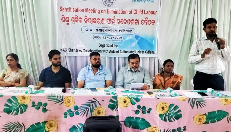 ଖଡିଆଳ: ନୂଆପଡ଼ା ଜିଲ୍ଲା ଖଡିଆଳ ବିଜ୍ଞାପିତ ଅଞ୍ଚଳ ପରିଷଦ ପକ୍ଷରୁ ଶିଶୁ ଶ୍ରମିକ ଉଚ୍ଛେଦ ଏବଂ ନିରାକରଣ ନେଇ ସଚେତନ ସଭା ଅନୁଷ୍ଠିତ ହୋଇଯାଇଅଛି । ସଭାରେ ନଗର ଅଧ୍ୟକ୍ଷ ଉଜ୍ଜ୍ୱଳ ଗୁପ୍ତା ଅଧ୍ୟକ୍ଷତା କରିଥିବା ବେଳେ ମୁଖ୍ୟ ଅତିଥି ରୂପେ ଜିଲ୍ଲା ଶିଶୁ ସୁରକ୍ଷା ସମିତି ଅଧ୍ୟକ୍ଷ ଡ଼. ଫାଣିନ୍ଦମ୍ ଦେଓ ଯୋଗ ଦେଇ ଶିଶୁଙ୍କୁ କୌଣସି କାର୍ଯ୍ୟରେ ନିୟୋଜିତ କରିବା ଆଇନଗତ ଦଣ୍ଡନୀୟ ଅପରାଧ ଅଟେ ବୋଲି ମତବ୍ୟକ୍ତ କରିଥିବା ବେଳେ ସମାଜ ସଚେତନ ହେଲେ ଶିଶୁ ଶ୍ରମିକ ଉଚ୍ଛେଦ ହେବା ନିଶ୍ଚିତ ଅଟେ ବୋଲି ପ୍ରକାଶ କରିଛନ୍ତି । ଏହି ସଚେତନ ସଭାରେ ଉପାଧ୍ୟକ୍ଷ ସକୁନ୍ତଳା ରାଉତ, ଏନଏସି ନିର୍ବାହୀ ଅଧିକାରୀ ଚିନ୍ମୟ ଆଚାର୍ଯ୍ୟ, ସମନ୍ୱିତ ଶିଶୁ ଉନ୍ନୟନ ଅଧିକାରୀଙ୍କ ପ୍ରତିନିଧି ନର୍ମଦା ବେହେରା ଯୋଗ ଦେଇଥିଲେ । ଶିଶୁ ସୁରକ୍ଷା ଜିଲ୍ଲା ପରାମର୍ଶଦାତା ରଂଜନ କୁମାର ସାହୁ ମଞ୍ଚ ପରିଚଲନା କରିଥିଲେ ।