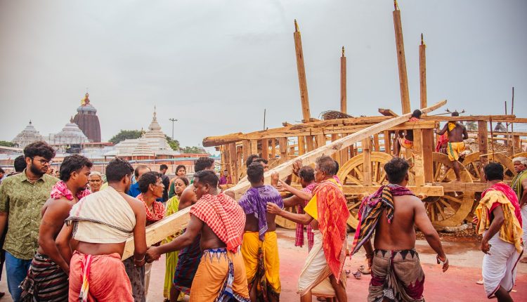 ପୁରୀ : ପବିତ୍ର ଘୋଷ ଯାତ୍ରା ଲାଗି ଚଳଚଞ୍ଚଳ ରଥ ଖଳା । ତିନି ରଥର ପ୍ରଥମ ଭୂଇଁ ପ୍ରେମ ନିର୍ମାଣ ଶେଷ ହେବାସହ ତିନି ରଥର ଉଭୟ ପାର୍ଶ୍ୱରେ ଗୋଟିଏ ଗୋଟିଏ ଛନ୍ଦା ଗୟଳ ମୋଡ଼ାଯାଇ କଣ୍ଟା ବସିବା ପାଇଁ ଦଉଡିରେ ବାନ୍ଧେଣୀ ପଡିଛି । ତିନିରଥ ଛନ୍ଦାଗୟଳ ମୋଡା ଶେଷ । ତିନି ରଥର ମୋଟ ୩୨ ଗୋଟି ଗୟଳ ମଧ୍ୟରୁ ୧୬ ଗୋଟି ପୋଲ ଗୟଳ ତିନି ରଥ ରେ ମୋଡା ଶେଷ ହୋଇଛି ବାକି ୧୬ ଗୋଟି ଛନ୍ଦା ଗୟଳ ମଧ୍ୟରୁ ତିନି ରଥ ଉଭୟ ପାର୍ଶ୍ୱରେ ଗୋଟିଏ ଗୋଟିଏ ଛନ୍ଦା ଗୟଳ ମୋଡାଜାଇ କଣ୍ଟା ବସିବା ପାଇଁ ଦଉଡିରେ ବାନ୍ଧେଣି ପଡ଼ିଥିଲା । ଆଜି ବାକି ୧୦ ଗୋଟି ଛନ୍ଦା ଗୟଳରୁ ତାଳଧ୍ୱଜ ରଥର ୪ଗୋଟି,ନନ୍ଦି ଘୋଷ ରଥର ୪ ଗୋଟି ଏବଂ ଦର୍ପ ଦଳନ ରଥର ୨ ଗୋଟି ଛନ୍ଦା ଗୟଳ ରଥ ଉଭୟ ପାର୍ଶ୍ୱରେ ମୋଡା ଶେଷ ହୋଇ ବାନ୍ଧେଣି ପଡ଼ି ଅଛି,ଏହା ଦୁଇପାର୍ଶ୍ୱ ନିରାଡିରେ ସଂଯୋଗ ହୋଇ ଗୟଳ ଏବଂ ନୀରାଡ଼ିରେ ଖୋଦେଇ କାପ ଶେଷ ହୋଇ କଣ୍ଟା ପଡିବା ବାକି ଅଛି ।
