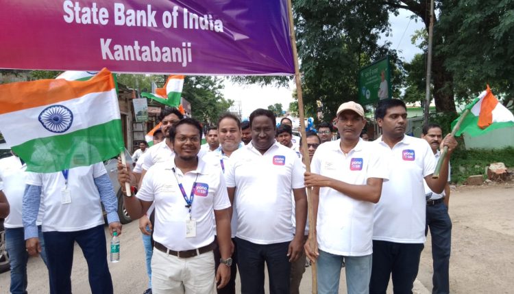 କଣ୍ଟାବାଞ୍ଜି : ସ୍ୱାଧୀନତାର ୭୫ ବର୍ଷ ପୂର୍ତ୍ତି ଓ ଆଜାଦି କା ଅମୃତ ମହୋତ୍ସବ ଅଗଷ୍ଟ ମାସ ୧୩ ରୁ ୧୫ ଚାଲିଥିବା ହର ହର ତ୍ରିରଙ୍ଗା ଘର ଘର ତ୍ରିରଙ୍ଗା ନାରାକୁ ରାଲି ମାଧ୍ୟମରେ ଜନ ସଗେତନତା କରିଛନ୍ତି କଣ୍ଟାବାଞ୍ଜି ଏସବିଆଇ ମୁଖ୍ୟ ଓ ସହାୟକ ଶାଖା ସମୂହ, ଏସବିଆଇ ଲୋଗୋ ରହିଥିବା ବ୍ୟାନର, ହାତରେ ତ୍ରିରଙ୍ଗା ଧରି ଭାରତ ମାତା କି ଜୟ, ବନ୍ଦେମାତରମ ଜୟ ସ୍ୱରରେ ମୁଖ୍ୟ ଶାଖାରୁ ଆରମ୍ଭ ହୋଇ ସହର ପରିକ୍ରମା କରି ଜନସଚେତନତା ପ୍ରଦାନ କରାଯାଇଥିଲା ।