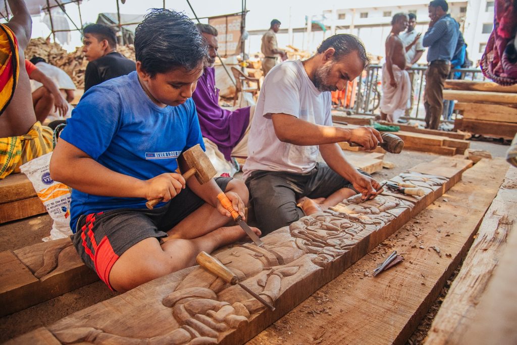 ରଥ ଚାଳି ଠାରେ ତିନି ରଥର ତିନୋଟି ଲେଖାଏଁ ଛନ୍ଦା ଗୟଳର ଚଉପଟ କାର୍ଯ୍ୟ ଶେଷ ପର୍ଯ୍ୟାୟରେ ପହଁଚିଛି । ରୂପକାର ସେବକ ମାନେ ତିନି ରଥର ନାଟଗୋଡ଼ରେ ରାହୁ ରୂପ ଖୋଦେଇ ଜାରୀ ରଖିଛନ୍ତି । ସେପଟେ ଦୋଳବେଦୀ କମାର ଶାଳରେ ଓଝା ସେବକ ମାନେ ତିନି ରଥ ର ନଦା କଣ୍ଟା ସକ ପୋଟଳ ବତା କଣ୍ଟା ନିର୍ମାଣ ଜାରୀ ରଖିଛନ୍ତି ।