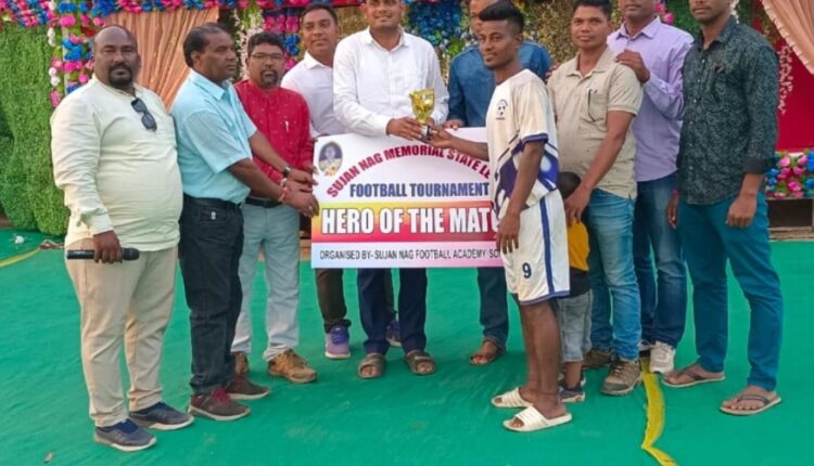 ସୁବର୍ଣ୍ଣପୁର : ସହରର ରୟାଲ ପଡିଆ ଠାରେ ଚାଲିଥିବା ୧୧ତମ ସୁଜନ ନାଗ ସ୍ମାରକୀ ରାଜ୍ୟ ସ୍ତରୀୟ ଫୁଟବଲ ଟୁର୍ଣ୍ଣାମେଣ୍ଟର ଆଜି ଦ୍ୱିତୀୟ ଦିବସରେ ସ୍ପୋର୍ଟସ ହଷ୍ଟେଲ ଫୁଲବାଣୀ ବନାମ ଇଲେଭେନ ଷ୍ଟାର କଳାପଥର ମଧରେ ଅନୁଷ୍ଠିତ ହୋଇଥିଲା । ଆଜିର ମ୍ୟାଚରେ ୩-୦ ବ୍ୟବଧାନରେ ଇଲେଭେନ ଷ୍ଟାର କଳାପଥର ଦଳ ବିଜୟୀ ହୋଇ ସେମିଫାଇନାଲକୁ ପ୍ରବେଶ କରିଛି । ଆଜିର ମ୍ୟାଚରେ ବେଷ୍ଟ ଗୋଲକିପର ଭାବରେ ସୋନପୁରର ଅଂଶୁମୁଣ୍ଡା , ବେଷ୍ଟ ଡିଫେଣ୍ଡର ଫୁଲବାଣୀର ବେଲାର, ବେଷ୍ଟ ଉଇଙ୍ଗର ଅଭୟ ମୁଣ୍ଡା, ବେଷ୍ଟ ମିଡଫିଲ୍ଡର ଦେବରାଜ କହଁର ଫୁଲବାଣୀ ଓ ମ୍ୟାନ ଅଫ ଦି ମ୍ୟାଚ୍ ଭାବରେ ସୋନପୁରର ବିଜୁ ଓରାମ ସୁନ୍ଦରଗୋଲ ସ୍କୋର କରିଥିଲେ । ଖେଳର ପ୍ରଥମାର୍ଦ୍ଧରେ ପ୍ରଥମ ଗୋଲ ପରେ ଦ୍ୱିତୀୟ ଓ ତୃତୀୟ ଗୋଲ ସ୍କୋର କରିଥିଲେ । ଆଜିର ଏହି ଖେଳରେ ମୁଖ୍ୟ ଅତିଥି ଭାବରେ ସୁବର୍ଣ୍ଣପୁରର ହାବିଲଦାର ଓ କନେଷ୍ଟବଳ ସଂଘର ନବ ନିର୍ବାଚିତ ସଭାପତି ଦିନେଶ ମିଶ୍ର, ଗୌତମ ପାତ୍ର,ଶ୍ରୀରାମ ସୁନା, ପ୍ରଦୀପ ସାହୁ, ନରସିଂହ ତରିଆ, ଚମରା ପଧାନ, ଶୁଭେନ୍ଦୁ ସାହୁ ପ୍ରମୁଖ ଅତିଥି ଭାବରେ ଯୋଗଦାନ କରି ପୁରସ୍କାର ବିତରଣ କରିଥିଲେ । ଆଜିର ଖେଳକୁ ଜଗତ ଜଗଦଲା, ରାଜେଶ ଥନାପତି ପରିଚାଳନା କରିଥିବାବେଳେ ଚିକୁ ବଡ଼ପଣ୍ଡା ଲାଇନ୍ସମ୍ୟାନ ଭାବରେ ସହଯୋଗ କରିଥିଲେ । ପ୍ରଶାନ୍ତ ସେଠି ମ୍ୟାଚ କମିଶନର ଭାବରେ ଦାୟିତ୍ୱ ତୁଲାଇଥିଲେ ଓ ରାକେଶ ନାଗ ଧାରା ବିବରଣୀ ପ୍ରଦାନ କରିଥିଲେ । ପୁରସ୍କାର ବିବରଣୀ କାର୍ଯ୍ୟକ୍ରମକୁ ଏକାଡେମୀର ଜନ୍ମେଜୟ ନାଗ ପରିଚାଳନା କରିଥିଲାବେଳେ ଲମ୍ବୋଦର, ଟୁନା, ଭଜମନ, ସୁନୀଲ, ଛବିଳ ପ୍ରମୁଖ ସହଯୋଗ କରିଥିଲେ ।