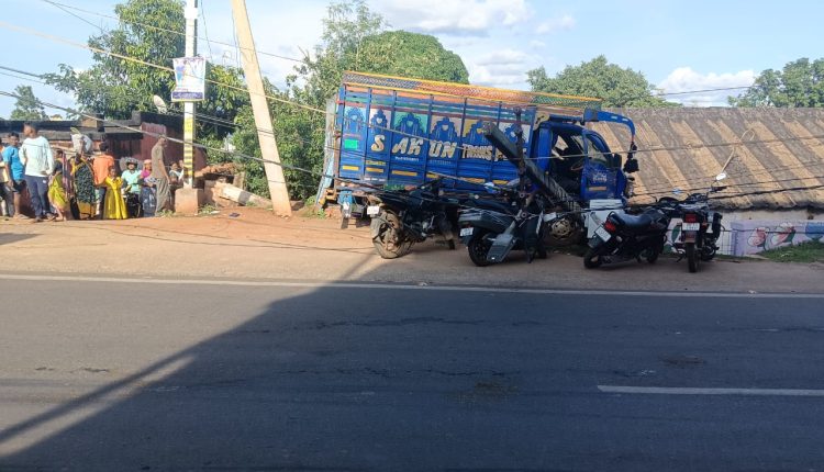 ପାଚେରୀକୁ ଧକ୍କା ଦେଲା ମିନି ଟ୍ରକ; ଅଳ୍ପକେ ବର୍ତ୍ତିଲେ ଘରେ ଥିବା ପରିବାର