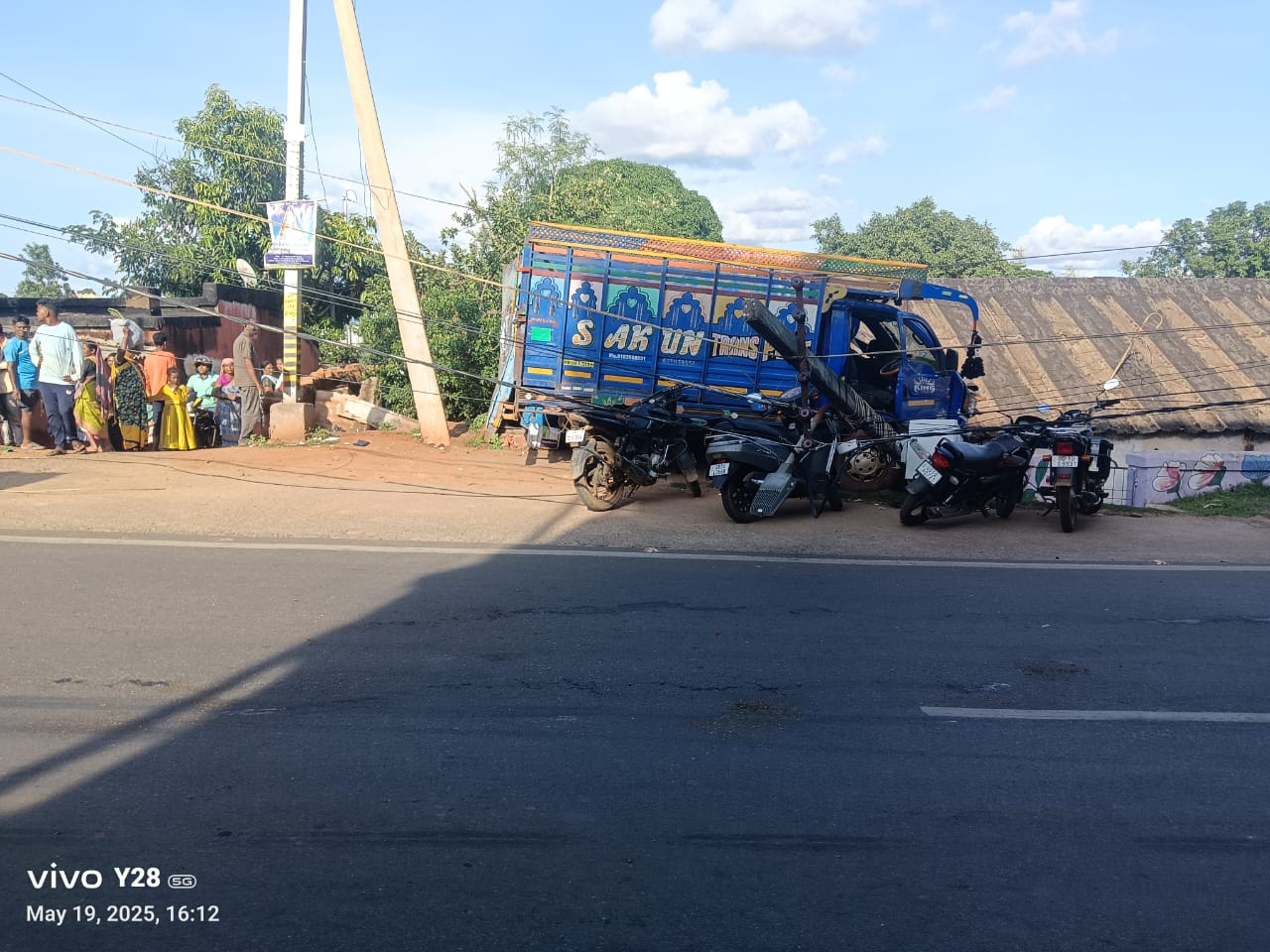 କୋରାପୁଟ : ବିଦ୍ୟୁତ୍ ପୋଲ ଓ ଘରକୁ ଧକ୍କା ଦେଲା ଗାଡ଼ି ।ପାଚେରୀ କାନ୍ଥ ଭାଙ୍ଗିଲା । ଅଳ୍ପକେ ବର୍ତ୍ତିଲେ ଘରେ ଥିବା ପରିବାର ଲୋକେ ।ପାଚେରୀ ଭାଙ୍ଗିଥିଲା ମଧ୍ୟ ଘରେ ଥିବା ପରିବାର ଲୋକଙ୍କ କୌଣସି କ୍ଷତି ହୋଇନଥିବା ସୂଚନା ରହିଛି । ଜୟପୁରରୁ କୋରାପୁଟ ଅଭିମୁଖେ ଆସୁଥିବା ମିନି ଟ୍ରକଟି ଆଲିସନ ହୋଟେଲ ନିକଟ ଗଡାଣି ନିକଟରେ ଗାଡ଼ି ର ବ୍ରେକ ଫେଲ ହୋଇଗଲା ।