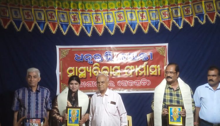 ପାରଳାଖେମୁଣ୍ଡି: ଗଜପତି ଜିଲ୍ଲା କାଶୀ ନଗର ବ୍ଲକର ସ୍ୱାସ୍ଥ୍ୟ ବିଳାସ ଫାର୍ମାସି ପକ୍ଷରୁ ଧନ୍ୱନ୍ତରି ଜୟନ୍ତୀ ପାଳିତ ହୋଇଯାଇଛି। ସକାଳୁ ରାମନାଥ ପାତ୍ର ଓ ପୂର୍ଣ୍ଣ ଚନ୍ଦ୍ର ପାତ୍ରଙ୍କ ଦ୍ଵାରା ପ୍ରଭୂ ଧନ୍ୱନ୍ତରୀଙ୍କ ପୂଜାର୍ଚ୍ଚନା ହୋମ ଯଜ୍ଞ କରାଯାଇ ପୂଜାର୍ଚ୍ଚନା କରାଯାଇଥିଲା। ପରେ ଏକ ସାଧାରଣ ସଭା ଅନୁଷ୍ଠିତ ହୋଇଥିଲା।ଏହି ସାଧାରଣ ସଭାରେ ଡକ୍ଟର ପୂର୍ଣ୍ଣଚନ୍ଦ୍ର ପାତ୍ର ସ୍ୱାଗତ ଭାଷଣ ଓ ଅତିଥି ପରିଚୟ ପ୍ରଦାନ କରିଥିବା ବେଳେ ଉପାନ୍ତ ପ୍ରହରି ତଥା ଗବେଷକ ପୂର୍ଣ୍ଣଚନ୍ଦ୍ର ମହାପାତ୍ରଙ୍କ ସଭାପତିତ୍ୱରେ ଏହି କାର୍ଯ୍ୟକ୍ରମ ଅନୁଷ୍ଠିତ ହୋଇଥିଲା।
