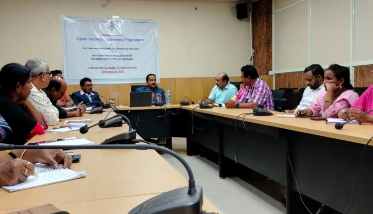 ପାରଳାଖେମୁଣ୍ଡି: ଗଜପତି ଜିଲ୍ଲାପାଳଙ୍କ ସମ୍ମିଳନୀ କକ୍ଷ ଠାରେ ସାଇବର ସୁରକ୍ଷା ସଚେତନତା ଶିବିର ସମସ୍ତ ଜିଲ୍ଲାସ୍ତରୀୟ ଅଧିକାରୀ ଓ ସମସ୍ତ କର୍ମଚାରୀଙ୍କୁ ଶିକ୍ଷଣ ପ୍ରଦାନ କରାଯାଇଛି । ଆଜିର ଏହି କର୍ମଶାଳାରେ ସାଇବର ସୁରକ୍ଷା ସଚେତନତା ସୃଷ୍ଟି କରିବା ଲକ୍ଷ୍ୟରେ ସାଇବର ସୁରକ୍ଷା ସଚେତନତା କାର୍ଯ୍ୟକ୍ରମ ଅନୁଷ୍ଠିତ ହୋଇଥିଲା ।