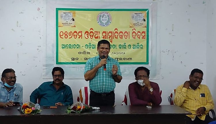 ଫୁଲବାଣୀ: କନ୍ଧମାଳ ଜିଲ୍ଲାର ସ୍ଥାନୀୟ ଜିଲ୍ଲା ସାମ୍ବାଦିକ ଭବନ ଫୁଲବାଣୀ ଠାରେ ୧୫୬ ତମ ଓଡ଼ିଆ ସାମ୍ବାଦିକତା ଦିବସ ପାଳିତ ହୋଇଯାଇଛି । ବରିଷ୍ଠ ସାମ୍ବାଦିକ ତଥା ପ୍ରେସ କ୍ଲବ ସଭାପତି ସୁନିଲ ପଟ୍ଟନାୟକଙ୍କ ସଭାପତିତ୍ୱ ରେ ଆୟୋଜିତ ସଭାରେ ମୁଖ୍ୟ ଅତିଥି ଭାବରେ ପିଏ ଆଇଟିଡିଏ ତଥା ସାହିତ୍ୟିକ ରବୀନ୍ଦ୍ର ଦାଶ ଯୋଗ ଦେଇ ସାମ୍ବାଦିକ ମାନେ ସର୍ବଦା ସତ୍ୟ ଓ ନିରପେକ୍ଷ ସମ୍ବାଦ ପ୍ରକାଶ ଉପରେ ଗୁରୁତ୍ୱ ଦେବା ଜରୁରୀ ବୋଲି କହିଥିଲେ । ସାମ୍ମାନୀତ ଅତିଥି ଭାବେ ବରିଷ୍ଠ ସାମ୍ବାଦିକ ଡ଼ଃ ଅରୂପ କୁମାର ଜେନା ଯୋଗ ଦେଇଥିଲେ । ଅନ୍ୟତମ ଅତିଥି ଭାବରେ ପ୍ରେସ କ୍ଳବ ସଭାପତି ସୁନିଲ କୁମାର ପଟ୍ଟନାୟକ, ସନ୍ତୋଷ କୁମାର ଦିଗାଲ, ଉପସଭାପତି ସତ୍ୟ ନାରାୟଣ ବେହେରା , ସମ୍ପାଦକ ପ୍ରଶାନ୍ତ କୁମାର ବେହେରା ପ୍ରମୁଖ ଯୋଗ ଦେଇ ଅତୀତର ଓଡ଼ିଆ ସାମ୍ବାଦିକଙ୍କ ଭୂମିକା ସହ ବର୍ତ୍ତମାନର ସାମ୍ବାଦିକଙ୍କ ଭୂମିକା ସମ୍ବନ୍ଧରେ ଆଲୋକପାତ କରିଥିଲେ । ସେହିପରି ଖବରକୁ ଲୋକଙ୍କ ପାଖରେ ପହଞ୍ଚାଉ ଥିବା ବ୍ୟକ୍ତିଙ୍କୁ ସାଧାରଣତଃ ସାମ୍ବାଦିକ କୁହାଯାଏ । ଯଦି ଅତୀତକୁ ଯିବା ପୂର୍ବ ରାଜା ରାଜୁଡା ଶାସନ କାଳରେ ଖବରଦାତା ବା ବାହାକ ଗୁପ୍ତଚର ଡେଙ୍ଗୁରା ବାଲା ବୋଲି ଆମେ ଆଖ୍ୟା ଦେଇପାରିବା କିନ୍ତୁ ସେମାନଙ୍କ ମାଧ୍ୟମ ଅଲଗା ଅଲଗା ଥିଲା । ବର୍ତ୍ତମାନ ସେହି କାର୍ଯ୍ୟକୁ ଖବରକାଗଜ ଓ ଟିଭି ମାଧ୍ୟମର ଲୋକଙ୍କୁ ଜଣାଇ ଦିଆଯାଉଛି । ଏହି ମାଧ୍ୟମକୁ ଆପଣେଇବା ପଛରେ ଗୋଟେ ବଡ଼ ମହତ୍ତ୍ୱପୂର୍ଣ୍ଣ ଉଦ୍ଦେଶ୍ୟ ଥିଲା । ଭାରତ ବର୍ଷରେ ଇଂରେଜ ମାନେ ଶାସନ କରୁଥିଲେ । ଦେଶ ଖଣ୍ଡ ବିଖଣ୍ଡିତ ଥିଲା । ବିଭିନ୍ନ ଅଂଚଳରେ ଭିନ୍ନ ଭିନ୍ନ ଭାବେ ପ୍ରଚଳନ ହେଉଥିଲା । ଏହି ଅଞ୍ଚଳର ଲୋକ ସେହି ଅଞ୍ଚଳର ଭାଷା ଜାଣିପାରୁ ନଥିଲେ, ତେଣୁ ଇଂରେଜ ମାନେ ଏହାର ଫାଇଦା ନେଉଥିଲେ । ୧୮୬୬ ଅଗଷ୍ଟ ୪ରେ କର୍ମବୀର ଗୌରୀ ଶଙ୍କର ଓ ବିଚିତ୍ରା ନନ୍ଦ ଦାସ ପ୍ରଥମେ ଓଡ଼ିଆ ଭାଷାରେ ଏକ ଖବରକାଗଜ ଉତ୍କଳ ଦୀପିକା ବାହାର କଲେ ଏହାର ଉଦ୍ଦେଶ୍ୟ ଲୋକଙ୍କ ସମସ୍ୟା ସରକାରଙ୍କ ପାଖରେ ପହଞ୍ଚାଇବା ଓ ସ୍ୱାଧୀନତା ସଂଗ୍ରାମ ପାଇଁ ଲୋକଙ୍କୁ ସଚେତନ କରାଇବା ଥିଲା ମୂଳ ଲକ୍ଷ୍ୟ ବୋଲି କହିଥିଲେ । ଅନ୍ୟ ମାନଙ୍କ ମଧ୍ୟରେ ସାମ୍ବାଦିକ କାହ୍ନୁ ଚରଣ ଶତପଥୀ ଯୋଗ ଦେଇ ପ୍ରଥମ ସମ୍ବାଦପତ୍ର ଉତ୍କଳ ଦୀପିକା ବିଷୟରେ ଆଲୋଚନା କରିଥିଲେ । ତ୍ରିନାଥ ସାହୁ, ନାରାୟଣ ସାହୁ, ମୁସ୍କାନ ସୁଆର ପ୍ରମୁଖ ସମାଜ ଗଠନରେ ସାମ୍ବାଦିକ ମାନଙ୍କ ଗୁରୁତ୍ୱପୂର୍ଣ୍ଣ ଭୂମିକା ରହିଥିବା କହିଥିଲେ । ସୁଜିତ ବେହେରା, ଆଦିତ୍ୟ ପ୍ରସାଦ ତ୍ରିପାଠୀ, ସୂର୍ଯ୍ୟ ନାରାୟଣ ବେହେରା, ଜୟ ସେନ ପରିଡ଼ା, ସିବନାୟକ, ଶିବରାମ ନାୟକ, ବୈଦ୍ୟନାଥ ନାୟକ, ସୁଧୀର ମହାରଣା, ବିମଳ ନାୟକ, ପ୍ରଶାନ୍ତ ଜେନା, କାହ୍ନା ପଟ୍ଟନାୟକ, ଦୁଃଖିଶ୍ୟାମ ପ୍ରଧାନ, ଖିରୋଦ ସାହାଣୀ, ସନ୍ତୋଷ ନାୟକ ପ୍ରମୁଖ ବହୁ ସାମ୍ବାଦିକ ଉପସ୍ଥିତ ଥିଲେ । ଶେଷରେ ପ୍ରେସ କ୍ଳବ ସହ ସମ୍ପାଦକ ରମେଶ ଚନ୍ଦ୍ର ପ୍ରଧାନ ବର୍ତ୍ତମାନ ସମୟରେ ଘଟଣା ଘଟିବାର ଖୁବ କମ ସମୟରେ ଖବର ପ୍ରସାରଣ କରୁଥିବା ସାମ୍ବାଦିକ ଓ ଅତିଥି ମାନଙ୍କୁ ଧନ୍ୟବାଦ ଅର୍ପଣ କରିଥିଲେ ।
