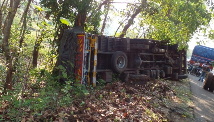 ଟାୱାର ସାମଗ୍ରୀ ବୋଝେଇ ଟ୍ରକ ଦୁର୍ଘଟଣା ଗ୍ରସ୍ତ,ଅଳ୍ପକେ ବର୍ତ୍ତିଲେ ଚାଳକ ଓ ଖଳସୀ