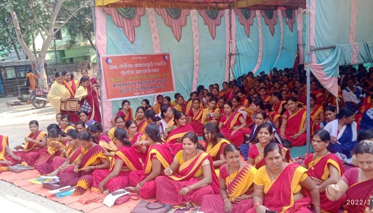 ବୀରମହାରାଜପୁର ସମନ୍ୱିତ ଶିଶୁ ବିକାଶ ପ୍ରକଳ୍ପ କାର୍ଯ୍ୟାଳୟ ସମ୍ମୁଖରେ ଅଙ୍ଗନବାଡି କର୍ମୀ ଓ ସହାୟିକାଙ୍କ ଅନଶନ