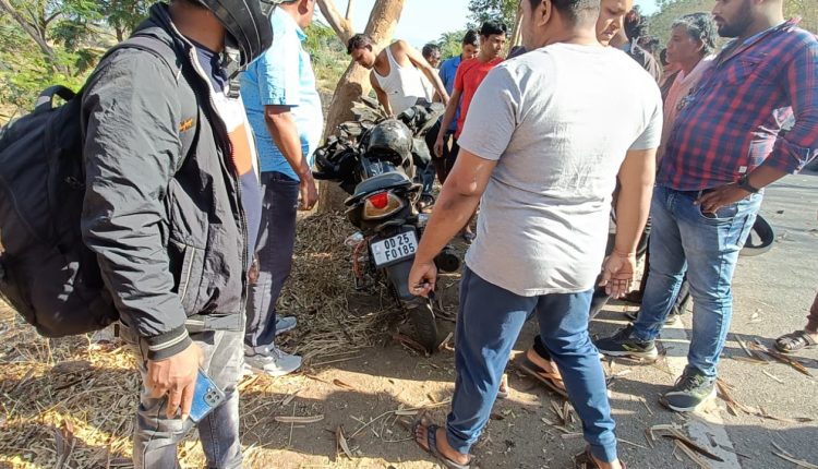 ଗଛକୁ ଧକ୍କା ଦେଲା ବାଇକ; ଜଣେ ମୃତ, ଜଣେ ଗୁରୁତର