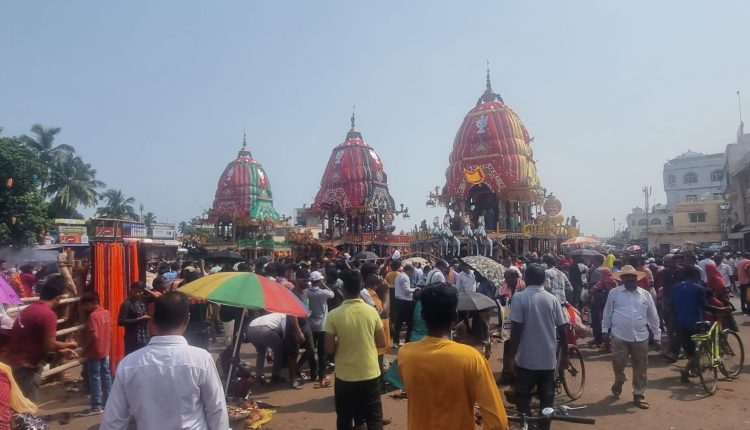 ଅନ୍ୟପଟେ ଗୁଣ୍ଡିଚାରେ ଶରଧା ବାଲିରେ ଦର୍ପଦଳନ, ନନ୍ଦିଘୋଷ ରଥ ନପହଂଚିବାକୁ ନେଇ ଚାଲିଛି କାରଣ ଖୋଜା । ରଥ ଟାଣିବା ବେଳେ ରଥ ଗଡିବା ଓ ରୋକିବା ପାଇଁ ବ୍ୟବହୃତ ପତାକା ଦେଖାଇବାକୁ ରଥ ଆଗରେ ଓ ରଥ ଉପରେ ଜେଟିପି, ପୁଲିସ ରହିଥାନ୍ତି । ସେହି ଅନୁସାରେ ପୁଲିସ ଡାକବାଜି ଜରିଆରେ ଘୋଷଣା ପରେ ରଥ ଗଡିଥାଏ ।