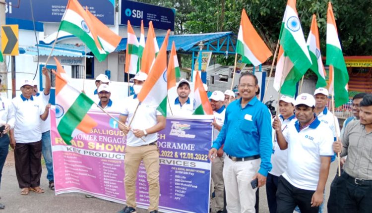 ବାଲିଗୁଡ଼ା: ସ୍ୱାଧୀନତାର ୭୫ ବର୍ଷ ପୂର୍ତ୍ତି ଅବସରରେ ଭାରତ ସରକାରଙ୍କ ନିର୍ଦ୍ଦେଶ ଅନୁଯାୟୀ ଦେଶ ପାଳୁଛି “ଆଜାଦୀ କା ଅମୃତ୍ ମହୋତ୍ସବ” । ଏହି ଅବସରରେ କନ୍ଧମାଳ ଜିଲ୍ଲା ବାଲିଗୁଡ଼ା ଭାରତୀୟ ଷ୍ଟେଟ୍ ବ୍ୟାଙ୍କ୍ ପକ୍ଷରୁ ହର୍ ଘର୍ ତ୍ରିରଙ୍ଗା କାର୍ଯ୍ୟକ୍ରମ ଅନୁଷ୍ଠିତ ହୋଇଯାଇଛି । ବାଲିଗୁଡ଼ା ମୁଖ୍ୟ ଶାଖା ପରିଚାଳକ ନିଳକଣ୍ଠ ବେହେରାଙ୍କ ଅଧ୍ୟକ୍ଷତାରେ ଏହି କାର୍ଯ୍ୟକ୍ରମ ଅନୁଷ୍ଠିତ ହୋଇଥିବା ବେଳେ ବାଲିଗୁଡ଼ା ମୁଖ୍ୟ ଶାଖା ସମେତ ବଜାର ଶାଖା, ବାରଖମା ଶାଖା ଓ କ.ନୂଆଗାଁ ଶାଖାର ସମସ୍ତ କର୍ମକର୍ତ୍ତା ଏହି କାର୍ଯ୍ୟକ୍ରମରେ ସାମିଲ୍ ହୋଇଥିଲେ । ସମସ୍ତ କର୍ମଚାରୀ ବାଲିଗୁଡ଼ା ମୁଖ୍ୟ ଶାଖା ସମ୍ମୁଖରୁ ହାତରେ ତ୍ରିରଙ୍ଗା ଧରି ସ୍ଲୋଗାନ୍ ଦେଇ ବସ୍ଷ୍ଟାଣ୍ଡ୍ ପର୍ଯ୍ୟନ୍ତ ଏକ ଶୋଭାଯାତ୍ରାରେ ବାହାରିଥିଲେ । ଏହାପରେ ଚଳିତ ମାସ ୧୩ ତାରିଖରୁ ୧୫ ତାରିଖ ପର୍ଯ୍ୟନ୍ତ ସମସ୍ତେ ନିଜ ନିଜ ଘରେ ତ୍ରିରଙ୍ଗା ଉଡ଼ାଇବା ସହ ଭାରତ ମା’ର ସେବାରେ ନିଜକୁ ଉତ୍ସର୍ଗୀକୃତ କରିବାକୁ ଶପଥଗ୍ରହଣ କରିଥିଲେ । ମୁଖ୍ୟ ଶାଖା ପରିଚାଳକ ନିଳକଣ୍ଠ ବେହେରା ଏହି କାର୍ଯ୍ୟକ୍ରମର ଲକ୍ଷ୍ୟ ଓ ଉଦ୍ଦେଶ୍ୟ ସମ୍ପର୍କରେ ସମସ୍ତଙ୍କୁ ଅବଗତ କରାଇବା ସହ ଜଣେ ଭାରତୀୟ ନାଗରିକ ଭାବେ ନିଜକୁ ଗର୍ବ ଓ ଗୌରବ ଅନୁଭବ କରିବାକୁ ଆହ୍ୱାନ୍ ଦେଇଥିଲେ ।