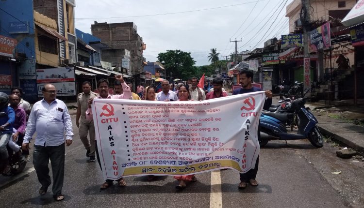 ଦଶପଲ୍ଲା : ଆଜି ଅଗଷ୍ଟ ୮ ତାରିଖ ଦିନ ସିଆଇଟିୟୁ ,ଅଖିଳ ଭାରତ କୃଷକ ସଭା ଓ ଅଖିଳ ଭାରତ କ୍ଷେତ ମଜଦୂର ୟୁନିଆନ ପକ୍ଷରୁ ଦଶପଲ୍ଲାରେ ଆଇନ ଅମାନ୍ୟ ଆନ୍ଦୋଳନ ଅନୁଷ୍ଠିତ ହୋଇଯାଇଛି । ଦରଦାମ ବୃଦ୍ଧି ବିରୁଦ୍ଧରେ, ବେକାରଙ୍କୁ ନିଯୁକ୍ତି, ଠିକା ଶ୍ରମିକ ମାନଙ୍କୁ ଓ ଆଉଟ୍‌ ସୋର୍ଶିଂ ନିଯୁକ୍ତ ମାନଙ୍କୁ ସ୍ଥାୟୀ କରିବା, ନିତ୍ୟ ବ୍ୟବହାର୍ଯ୍ୟ ଜିନିଷ ଉପରୁ ଜିଏସଟି ପ୍ରତ୍ୟାହାର, କୃଷିଜାତ ଜିନିଷର ସର୍ବ ନିମ୍ନ ମୂଲ୍ୟ ପାଇଁ ଆଇନ କରିବା, କୃଷି ଋଣ ଛାଡ କରିବା, ସ୍କିମ ୱର୍କର ମାନଙ୍କୁ ସରକାରୀ କର୍ମଚାରୀର ମାନ୍ୟତା, ସରକାରୀ ଉଦ୍ୟୋଗ ଗୁଡ଼ିକୁ ଘରୋଇ କମ୍ପାନୀକୁ ଦେବା ବନ୍ଦ କରିବା, ବାସହୀନ ମାନଙ୍କୁ ଘରଡିହ ଏବଂ ବାସଗୃହ ଯୋଗାଇ ଦେବା, ମନରେଗା ଯୋଜନାରେ ବର୍ଷକୁ ୨୦୦ ଦିନ କାମ ଓ ୭୦୦ ଟଙ୍କା ମଜୁରୀ ଇତ୍ୟାଦି ଦାବି ନେଇ ଏକ ଶୋଭାଯାତ୍ରା ଦଶପଲ୍ଲା ବ୍ଲକ ଛକରୁ ବାହାରି ତହସିଲ ଅଫିସକୁ ଯାଇଥିଲା । ତହସିଲ ଅଫିସ୍‌ ଠାରେ ଆନ୍ଦୋଳନକାରୀମାନେ ପୋଲିସ କଡନ ଭାଙ୍ଗି , ଆଇନ ଅମାନ୍ୟ କରି ଗିରଫ ହୋଇଥିଲେ । ପୋଲିସ ଗିରଫ କରି ସତ୍ୟାଗ୍ରହକାରୀ ମାନଙ୍କୁ, ଥାନାକୁ ଆଣି ପୁଣି ଛାଡ଼ି ଦେଇଥିଲା । ଏହି ଆନ୍ଦୋଳନରେ ସିଆଇଟିୟୁର ଜିଲ୍ଲା ସମ୍ପାଦକ ଶରତ ଚନ୍ଦ୍ର ବେହେରା, ଜୟନ୍ତୀ ଦାସ,ସସ୍ମିତା ପଟ୍ଟନାୟକ, ସଞ୍ଜୁ ପଣ୍ଡା ଏବଂ କୃଷକ ସଭାର ବ୍ଲକ କମିଟି ସମ୍ପାଦକ ଗଣେଶ୍ୱର ନାୟକ ସଭାପତି ବ୍ରଜ ବନ୍ଧୁ ପ୍ରଧାନ,ଯୁବ ସଂଗଠନର ନେତା ସୁଶାନ୍ତ ନାୟକ, ବିପିନ୍‌ ବିହାରୀ ବାଜୁ ଓ ପ୍ରଦୀପ କୁମାର ନାୟକ ପ୍ରମୁଖ ନେତୃତ୍ୱ ନେଇଥିଲେ ।