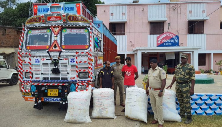 ବାଲିଗୁଡ଼ା : ଆନ୍ତଃରାଜ୍ୟ ଗଞ୍ଜେଇ ଚାଲାଣ ବେଳେ ବିଶ୍ୱସ୍ତ ସୂତ୍ରରୁ ଖବର ପାଇ ଆମ୍ବଖାଲିଆ ଘାଟି ନିକଟରେ ମାଡି ବସିଲା ଦାରିଙ୍ଗବାଡ଼ି ପୋଲିସ । ଉତ୍ତରପ୍ରଦେଶର ଏକ ଟ୍ରକରୁ ୨୦୩କିଲୋ ୪୦୦ ଗ୍ରାମ୍ ଗଞ୍ଜେଇ ଜବତ କରିବା ସହ ଦୁଇଜଣ ଚାଲାଣକାରୀଙ୍କୁ ଗିରଫ କରିଛି ଦାରିଙ୍ଗବାଡି ପୋଲିସ୍ । ଜବତ ଗଞ୍ଜେଇର ଆନୁମାନିକ ମୂଲ୍ୟ ୨୦ଲକ୍ଷ ଟଙ୍କାରୁ ଉର୍ଦ୍ଧ୍ୱ ହେବ ବୋଲି ସୂଚନା ମିଳିଛି । ଗିରଫ ଅଭିଯୁକ୍ତ ୨ଜଣ ଉତ୍ତରପ୍ରଦେଶ କୌଶମ୍ଭି ଜିଲ୍ଲା ଠୁଗଲା ଅଞ୍ଚଳର ସାରୁଖ ଖାନ ଓ ଫତେପୁର ଜିଲ୍ଲା ଭୀମପୁର ଅଞ୍ଚଳର ଅଜୟ କୁମାର । ଦାରିଙ୍ଗବାଡ଼ି ଥାନା ଅଧିକାରୀଙ୍କ ସୂଚନା ପ୍ରକାରେ ବାଲିଗୁଡ଼ା ଅଞ୍ଚଳରୁ ଦାରିଙ୍ଗବାଡ଼ି ଦେଇ ଉତ୍ତରପ୍ରଦେଶକୁ ଅତି ଚତୁରତାର ସହ ଗଞ୍ଜେଇ ଚୋରା ଚାଲାଣ ହେଉଥିବା ନେଇ ବିଶ୍ୱସ୍ତ ସୂତ୍ରରୁ ଥାନା ଅଧିକାରୀ କୌଶିକ ମାଝୀ ଖବର ପାଇବା ପରେ ନିଜ ଅଧ୍ୟକ୍ଷତାରେ ଏକ ସ୍ୱତନ୍ତ୍ର ଟିମ୍ ଗଠନ କରିବା ସହ ହିଲଭିୟୁ ପାର୍କ ନିକଟ ଆମ୍ବ ଖାଲିଆ ବୁଲାଣିରେ ଛପି ରହିଥିଲେ । ବାଲିଗୁଡା ପଟୁ ଏକ ଟ୍ରକ ନମ୍ବର (UP73A3627)ଦ୍ରୁତ ଗତିରେ ଆସୁଥିବା ବେଳେ ପୋଲିସ ସମ୍ପୃକ୍ତ ଟ୍ରକକୁ ଯାଞ୍ଚ୍ କରିବା ସମୟରେ ଟ୍ରକରେ ଅତି ଚତୁରତାର ସହ ଗଞ୍ଜେଇ ଭର୍ତ୍ତି ବସ୍ତା ଲୁଚାଇ ରଖାଯାଇଥିବା ଦେଖିବାକୁ ମିଳିଥିଲା । ଏହାପରେ ଗଞ୍ଜେଇ ସହିତ ଟ୍ରକକୁ ଜବତ କରିବା ସହ ବେଆଇନ୍ ଗଞ୍ଜେଇ ଚୋରାଚାଲାଣ ଅଭିଯୋଗରେ ଦାରିଙ୍ଗବାଡି ଥାନା କେସ୍ ନମ୍ବର ୧୦୦/୨୨ରେ ଏକ ମାମଲା ରୁଜୁ କରି ଟ୍ରକରେ ଥିବା ଉତ୍ତରପ୍ରଦେଶର ୨ଜଣ ଯୁବକଙ୍କୁ ଗିରଫ କରି କୋର୍ଟ ଚାଲାଣ କରିଛି ଦାରିଙ୍ଗବାଡି ପୋଲିସ୍ । ଅନ୍ୟପଟେ ଘଟଣାର ଅଧିକ ତଦନ୍ତ ଜାରି ରଖିଥିବା ସୂଚନା ଦେଇଛନ୍ତି ଥାନା ଅଧିକାରୀ କୌଶିକ ମାଝୀ ।
