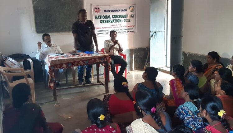 ପାରଳାଖେମୁଣ୍ଡି : ଗଡସ ସ୍ୱେଚ୍ଛାସେବୀ ଅନୁଷ୍ଠାନ ଓ ବୈଧ ମାପ ବିଜ୍ଞାନ ବିଭାଗ ଗଜପତିଙ୍କ ମିଳିତ ଆନୁକୂଲ୍ୟରେ କାଶୀ ନଗର ବ୍ଳକ ପୁରୁଟି ଗୁଡା ଗ୍ରାମଠାରେ ସ୍ୱୟଂ ସହାୟକ ଗୋଷ୍ଠୀର ମହିଳା ମାନଙ୍କୁ ନେଇ ଜାତୀୟ ଗ୍ରାହକ ଦିବସ ପାଳନ କରାଯାଇଛି । ଏହି କାର୍ଯ୍ୟକ୍ରମରେ ଦୁର୍ଯ୍ୟୋଧନ ପଟେଲ ଖଣ୍ଡାବା ଋଷିକୂଲ୍ୟା ବ୍ୟାଙ୍କର ମ୍ୟାନେଜର ଏବଂ ଟି.ରାଜେଶ କୃଷି ବିଭାଗର ଅଧିକାରୀ ଯୋଗ ଦେଇ ମହିଳାମାନଙ୍କୁ ଗ୍ରାହକ ଦିବସର ଅର୍ଥ,ଗ୍ରାହକର ଅଧିକାର ବିଭିନ୍ନ ସେବା ପାଇବା ସମୟରେ ସେମାନେ କିପରି ସତର୍କତା ଅବଲମ୍ବନ କରିବେ,ଗ୍ରାହକ ମାନେ ଠକାମିରେ ପଡିଲେ ଜିଲ୍ଲା ଗ୍ରାହକ ଅଦାଲତର ଭୂମିକା, ଗ୍ରାହକ ଅଦାଲତର ବିଭିନ୍ନ କାର୍ଯ୍ୟ ବିଷୟରେ ବୁଝାଇଥିଲେ । ଗଡସ ଅନୁଷ୍ଠାନ ର ସମ୍ପାଦକ ସୁନୀଲ ପାତ୍ର ଖାଉଟି ସୁରକ୍ଷା ଆଇନ ସମ୍ପର୍କରେ ଏବଂ ଜିଲ୍ଲା ବିବାଦ ପ୍ରତିକାର ମଞ୍ଚ ବିଷୟରେ ବୁଝାଇବା ସହ ଆଗାମୀ ଦିନରେ ଯଦି କେହି ସମ୍ବନ୍ଧରେ କିଛି ପରାମର୍ଶ ବା ସାହାଯ୍ୟ ଚାହିଁଲେ ଅନୁଷ୍ଠାନ ତରଫରୁ ସହଯୋଗ କରିବେ ବୋଲି ଜଣାଇଥିଲେ ଏହି କାର୍ଯ୍ୟକ୍ରମକୁ ଅନୁଷ୍ଠାନର କର୍ମକର୍ତ୍ତା ମାନେ ପରିଚାଳନା କରିଥିଲେ ।