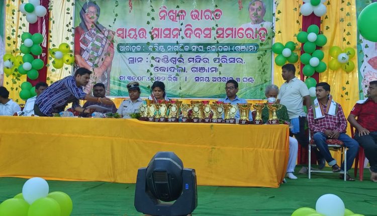 ଗଞ୍ଜାମ: ଗଞ୍ଜାମ ଜିଲ୍ଲା କୋଦଳା ପ୍ରଭୁ ଶ୍ରୀ ଦଣ୍ଡିଶ୍ୱରଙ୍କ ପ୍ରାଙ୍ଗଣରେ ୨୦୨୨ ଅଗଷ୍ଟ ୩୧ ନିଖିଳ ଭାରତ ସ୍ୱାୟତ୍ତ ଶାସନ ଦିବସ ମହାସମାରୋହରେ ପାଳନ ହୋଇଯାଇଛି । କୋଦଳା ବରିଷ୍ଠ ନାଗରିକ ସଂଘ ତରଫରୁ ଆୟୋଜିତ ଏହି କାର୍ଯ୍ୟକ୍ରମରେ ସ୍ଥାନୀୟ ବିଧାୟିକା ଶ୍ରୀମତୀ ଲତିକା ପ୍ରଧାନ ମୁଖ୍ୟଅତିଥି ଭାବେ ଯୋଗଦେଇଥିବା ବେଳେ, ସମ୍ମାନିତ ଅତିଥିଭାବେ କୋଦଳା ଅତିରିକ୍ତ ତହସିଲଦାର ଅଶୋକ କୁମାର ତ୍ରିପାଠୀ, କୋଦଳା ଥାନା ଏସ ଆଇ ଆରତୀ ପରିଡ଼ା, କୋଦଳା ଗୋଷ୍ଠୀସ୍ୱସ୍ଥ୍ୟ ଅଧିକାରୀ ଆଦିତ୍ୟ ପ୍ରସାଦ ସାହୁ, କୋଦଳା ବରିଷ୍ଠ ନାଗରିକ ସଂଘ ସଭାପତି ଏସ ସୂର୍ଯ୍ୟ ନାରାୟଣ ଦୋରା , ସମ୍ପାଦକ ପ୍ରକାଶ ଚନ୍ଦ୍ର ପାତ୍ର, କୋଦଳା ମହିଳା ବିଜେଡି ସଭାନେତ୍ରୀ ସୁନୀତା ରାଣୀ ପ୍ରଧାନ, ପ୍ରମୋଦ କୁମାର ପଣ୍ଡା ପ୍ରମୁଖ ଯୋଗଦେଇ ପ୍ରତିଯୋଗିତାରେ କୃତିତ୍ୱ ଛାତ୍ର ଛାତ୍ରୀମାନଙ୍କୁ ପୁରସ୍କୃତ କରିବା ସାଙ୍ଗକୁ ଅଞ୍ଚଳରେ ବରିଷ୍ଠ କଳାକାର ଓ ବିଚାରକମାନଙ୍କୁ ସମ୍ମାନିତ କରିବାସହ ବିଜ୍ଞାପିତ ଅଞ୍ଚଳ ପରିଷଦର ପରିମଳ କାର୍ଯ୍ୟକର୍ତ୍ତାଙ୍କୁ ମଧ୍ୟ ସମ୍ମାନିତ କରାଯାଇଥିଲା । ବିଗତ ଦିନରେ ବିଭିନ୍ନ ପ୍ରତିଯୋଗିତାରେ ଉତ୍ତୀର୍ଣ୍ଣ ହୋଇଥିବା ସମସ୍ତ କୃତି ଛାତ୍ର ଛାତ୍ରୀ ମାନଙ୍କୁ ପୁରସ୍କାର ବିତରଣ କରାଯାଇଥିଲା । କୋଦଳା ସହରର ଉନ୍ନତି ନିମନ୍ତେ ମୁଖ୍ୟଅତିଥି ମାହୋଦୟାଙ୍କ ଅଭିଭାଷଣ ସମସ୍ତଙ୍କ ମନରେ ଏକ ଆନନ୍ଦର ଲହରୀ ସୃଷ୍ଟି କରିଥିଲା । ଶେଷରେ ସାଂସ୍କୃତିକ କାର୍ଯ୍ୟକ୍ରମମାନ ଆୟୋଜିତ ହୋଇଥିଲା । ଉକ୍ତ କାର୍ଯ୍ୟକ୍ରମରେ କୋଦଳା ସ୍ୱର୍ଣ୍ଣମୟୀ ଉଚ୍ଚ ବିଦ୍ୟାଳୟର ଶିକ୍ଷୟତ୍ରୀ ଇପ୍ସୀତା ପ୍ରିୟଦର୍ଶନୀ ମଞ୍ଚ ପରିଚାଳନା କରିଥିବାବେଳେ ଏଥିରେ ମୁଖ୍ୟ ପରିଚାଳକଭାବେ ଭଗବାନ ପାଢ଼ୀ କାର୍ଯ୍ୟଭାର ତୁଲାଇଥିଲେ । ତତ୍ ସହିତ ସୂର୍ଯ୍ୟ ନାରାୟଣ ବଡୁ, ବନି ପ୍ରଧାନ, ସୁଦାମ ମାହାନ୍ତି, ମନୋରଞ୍ଜନ ଡାକୁଆ, ଜିତୁ ପ୍ରଧାନ, ଆଲୋକ ବାରିକ ପ୍ରମୁଖ ସହଯୋଗ କରିଥିଲେ ।
