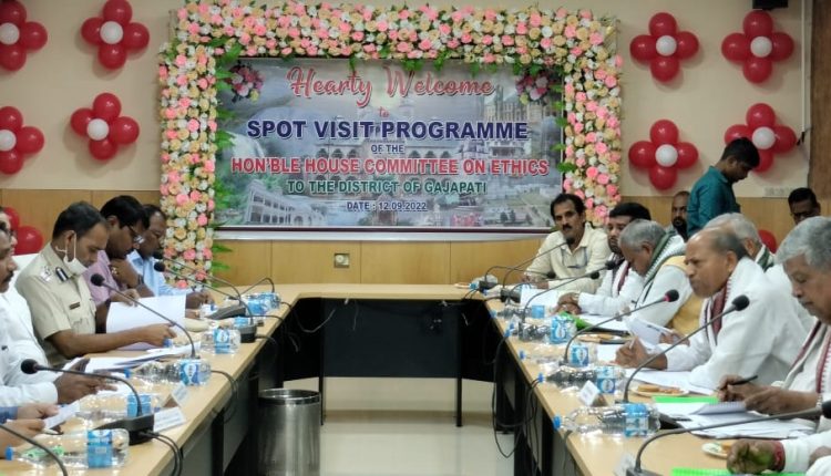 ପାରଳାଖେମୁଣ୍ଡି: ରାଜ୍ୟ ବିଧାନସଭା ସଦାଚାର କମିଟି ପକ୍ଷରୁ ଦିନିକିଆ ଗଜପତି ଜିଲ୍ଲା ଗସ୍ତ କରି ଜିଲ୍ଲାର ଉଚ୍ଚ ପଦାଧିକାରୀଙ୍କ ସହିତ ଜନପ୍ରତିନିଧିଙ୍କ ଅଭିଯୋଗ ଉପରେ କିଭଳି କାର୍ଯ୍ୟାନୁଷ୍ଠାନ ଗ୍ରହଣ କରାଯାଇଛି ସେ ସମ୍ପର୍କରେ ସମୀକ୍ଷା କରାଯାଇଛି ।
