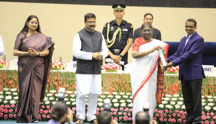 ପୁରୀ : ଗୁରୁଦିବସରେ ଓଡିଆ ଗୁରୁଙ୍କୁ ବଡ ଉପହାର ଦେଇଛନ୍ତି ଓଡିଆ ମହିଳା ରାଷ୍ଟ୍ରପତି ଶ୍ରୀମତୀ ଦ୍ରୌପଦୀ ମୁର୍ମୁ । ଆଜି ଓଡିଶା ଇତିହାସ ପାଇଁ ଏକ ସ୍ୱର୍ଣ୍ଣିମ ଅଧ୍ୟାୟ । ପ୍ରଥମଥର ପାଇଁ ଶିକ୍ଷା ଜଗତ ସହ ଜଡିତ ଥିବା ଶିକ୍ଷକ ମାନଙ୍କୁ ମହମହୀମ ରାଷ୍ଟ୍ରପତି ପୁରଷ୍କୃତ ଓ ସମ୍ୱର୍ଦ୍ଧନା କରିଥିବା ବେଳେ ପୁରୀରେ ଜଣେ ଶିକ୍ଷକଙ୍କୁ ଏହି ସୁଯୋଗ ମିଳିଛି । ସମୁଦାୟ ଭାରତର ବିଭିନ୍ନ ରାଜ୍ୟରୁ ୪୫ ଜଣ ଶିକ୍ଷକ ନିଜର ଅପାର ପାରଦର୍ଶିତା ପାଇଁ ମନୋନୀତ ହୋଇ ପୁରସ୍କୃତ ହୋଇଥିବା ବେଳେ ପୁରୀ ଜିଲ୍ଲା ନିମାପଡା ବ୍ଲକ୍ ବାଙ୍ଗୁରୁଷ ପାଟଣା ଗ୍ରାମର ଇଶ୍ୱର ଚନ୍ଦ୍ର ନାୟକ ରାଷ୍ଟ୍ରପତି ଦ୍ରୌପଦୀ ମୁର୍ମୁଙ୍କ ଠାରୁ ରାଷ୍ଟ୍ରୀୟ ଶିକ୍ଷକ ପୁରସ୍କାର ଗ୍ରହଣ କରିଛନ୍ତି । ଯାହାକୁ ନେଇ ତାଙ୍କ ଗ୍ରାମରେ ବେଶ୍ ଉତ୍ସାହ ଦେଖାଯାଇଥିବା ବେଳେ ଏଭଳି ପୁରସ୍କାର ପ୍ରାପ୍ତିକୁ ନେଇ ଗ୍ରାମରେ ମିଠା ବଣ୍ଟନ କରାଯାଇଛି ।