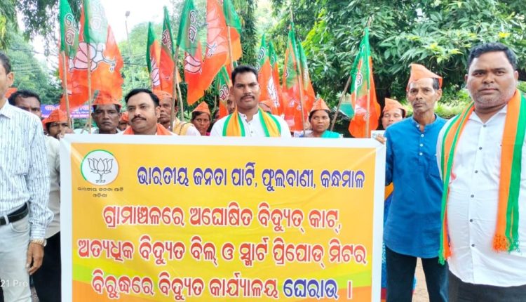 ଫୁଲବାଣୀ :କନ୍ଧମାଳ ଜିଲ୍ଲା ବିଜେପି ପକ୍ଷରୁ ଫୁଲବାଣୀ ଗ୍ରାମିଣ ମଣ୍ଡଳ ସଭାପତି ଆଦିତ୍ୟ କହଁରଙ୍କ ନେତୃତ୍ୱରେ ଏକ ରାଲି ମାଧ୍ୟମରେ ଫୁଲବାଣୀ ବ୍ଲକ୍ ଅନ୍ତର୍ଗତ ଆଲାମି, ତୁଡ଼ିପାଜୁ,ଦଡ଼କି, ଗ୍ରାମ ପଞ୍ଚାୟତର ସମସ୍ତ ବାସିନ୍ଦା ମିଳିତ ଭାବେ ବିଦ୍ୟୁତ ବିଭାଗୀୟ କାର୍ଯ୍ୟାଳୟ ଘେରାଉ କରିବା ସହ ବିଦ୍ୟୁତ ବିଭାଗୀୟ ଯନ୍ତ୍ରୀଙ୍କୁ ଏକ ଲିଖିତ ଅଭିଯୋଗ କରିଛନ୍ତି । ଗ୍ରାମବାସୀଙ୍କ କହିବା ଅନୁଯାୟୀ ଗ୍ରାମ ଗୁଡିକରେ ସଂଯୋଗ ହୋଇଥିବା ବିଦ୍ୟୁତ୍ ବାରମ୍ବାର ଅଘୋଷିତ ଭାବରେ କଟା ଯିବା ଫଳରେ ଛାତ୍ର ଛାତ୍ରୀ ମାନେ ଠିକରେ ପାଠପଢି ପାରୁ ନାହାନ୍ତି, ମାମାନେ ସନ୍ଧ୍ୟା ସମୟରେ ରୋଷେଇ କରି ପାରୁ ନାହାନ୍ତି । ମାସକୁ ମାସ ବିଦ୍ୟୁତ୍ ବିଲ୍ ପଇଠ କଲା ପରେ ମଧ୍ୟ ଅତ୍ୟଧିକ ବିଲ୍ ଆସୁଛି, ୧୯୧୨ କୁ କଲ କଲା ପରେ ମଧ୍ୟ ତା ପର ଦିନ ଆସୁଛନ୍ତି, ମାସକୁ ମାସ ବିଲ ପୈଠ କଲା ପରେ ମଧ୍ୟ ବିଲ ଆସୁଛି,ଗ୍ରାମ ଗୁଡିକକୁ ଯାତାୟତ ସମସ୍ୟା ଓ ଜଙ୍ଗଲ ମଧ୍ୟରେ ଥିବା ହେତୁ ସ୍ମାର୍ଟ ପ୍ରି-ପେଡ୍ ଲଗାଇଲେ ବହୁ ସମସ୍ୟା ହେବ ଏଣୁ ଏହାକୁ ଲଗେଇବା ବନ୍ଦ କରାଯାଉ ଏପରି ବିଭିନ୍ନ ଦାବି ଲିଖିତ ଅଭିଯୋଗ କରିଛନ୍ତି ।